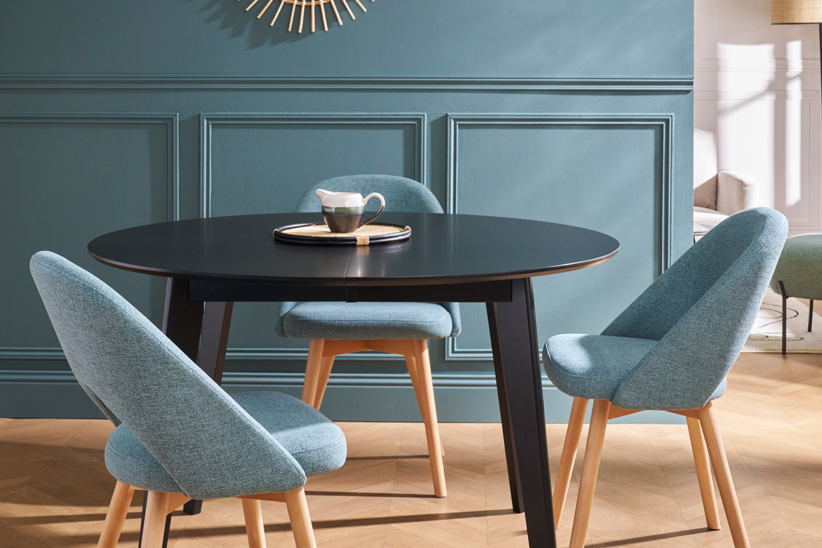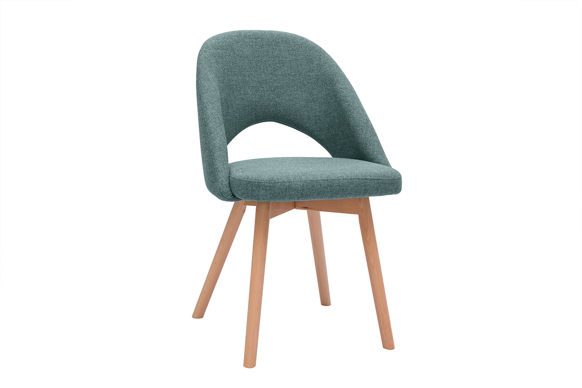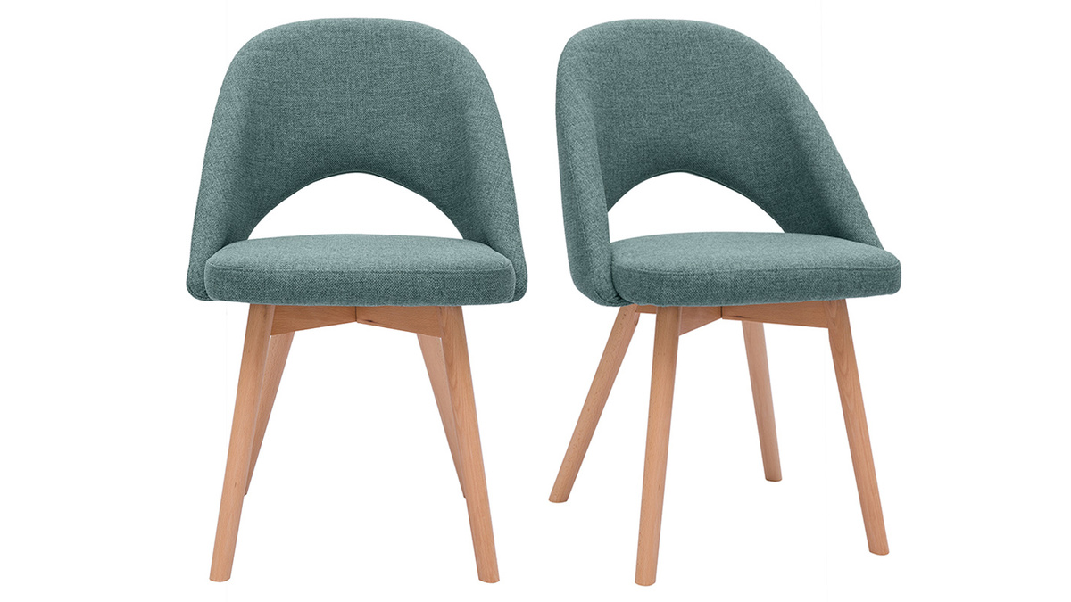 Ce modèle de chaises scandinaves sont habillées d'un joli tissu vert de gris (100% polyester) qui répond parfaitement au piètement en hêtre massif. Associées à du meubles en bois clair, les chaises COSETTE donneront le ton d'une atmosphère douce et chaleureuse.