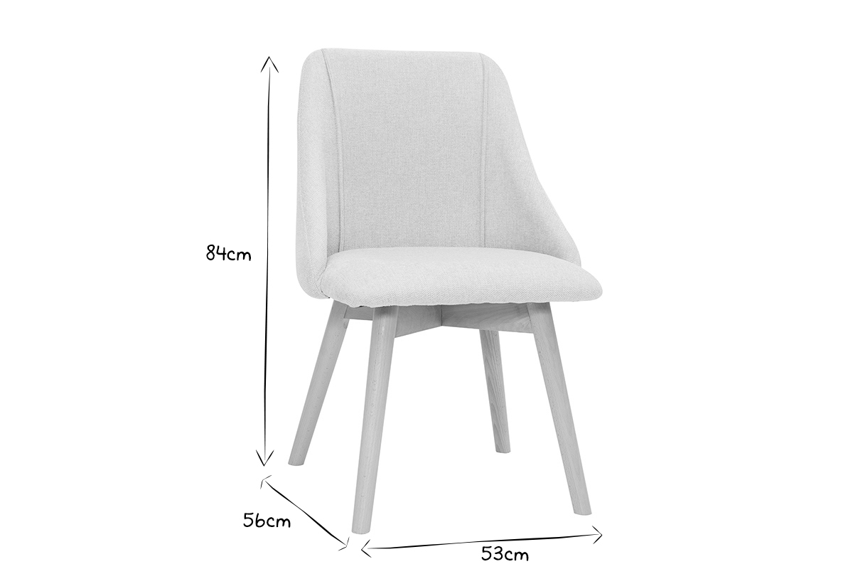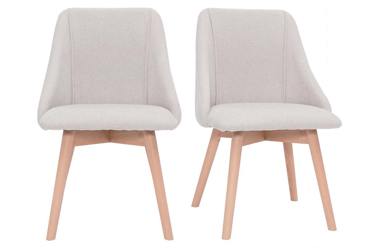 Chaises scandinaves en tissu effet velours texturé beige et bois clair HIGGINS vendues par lot de 2. Livrées prêtes à assembler. Montage simple, seuls les pieds sont à fixer.