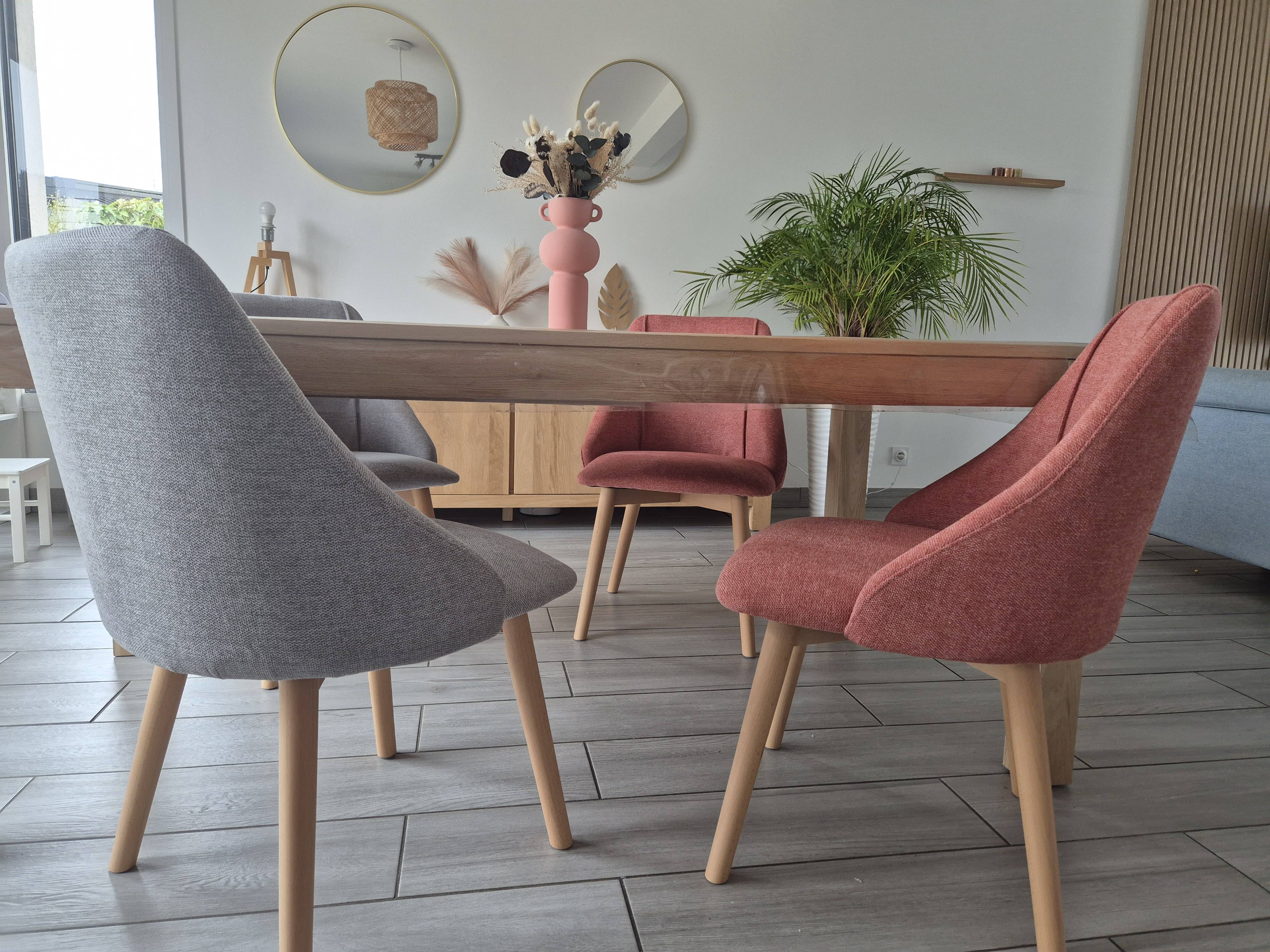 Avec leurs dossiers hauts et enveloppants (H40 cm), leurs assises généreusement rembourrées, ces chaises de cuisine jaune moutarde et bois clair jouent la carte de la douceur. Les formes douces répondent aux teintes naturelles dans un équilibre parfait et une élégance subtilement décontractée.