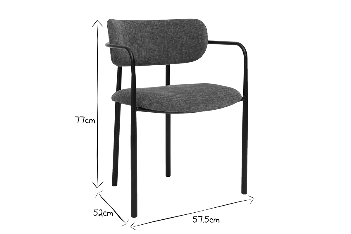 Le rembourrage (24 kg/m3) de l’assise et du dossier offre un excellent soutien, parfait pour les repas en famille, les soirées conviviales entre amis, ou encore les moments de travail ou de lecture prolongés. Les accoudoirs délicatement incurvés renforcent cette ergonomie, permettant une posture détendue et naturelle.
