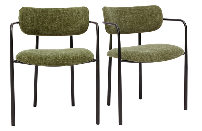 Ces assises se distinguent par leur silhouette épurée et leurs lignes modernes. Le cadre en métal noir confère une touche industrielle, tandis que l’assise et le dossier recouverts de tissu effet velours texturé ajoutent une sensation de luxe et de douceur. La teinte vert kaki, chaleureuse et actuelle, s’intègre harmonieusement dans une grande variété de styles d’intérieur, du contemporain au vintage, en passant par le bohème ou le scandinave.