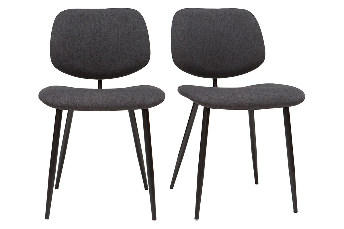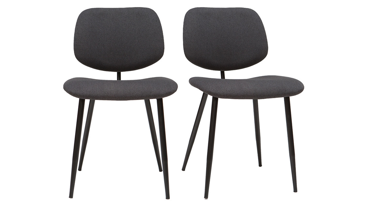 Avec leur silhouette élancée et leurs courbes généreuses, ces chaises offrent une esthétique douce et minimaliste. Elles vont à l'essentiel pour un rendu au charme intemporel. Ces chaises en tissu gris anthracite (100% polyester) et pieds en métal noir sont des indémodables conçues pour se fondre harmonieusement dans tous les intérieurs. Les silhouettes légères de ces chaises de salle à manger ou cuisine habilleront votre espace repas d'un style fin et délicat.