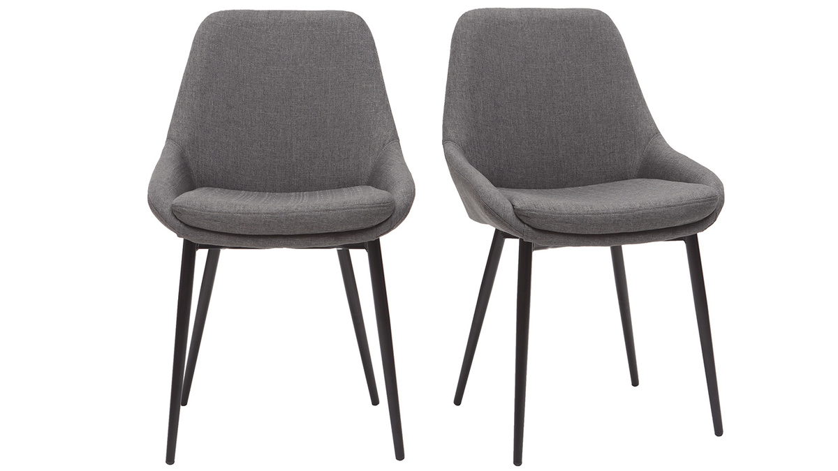 L'association du tissu (100% polyester) et d'un piètement fin en métal noir, donne à ces chaises grises un style délicat. Si le revêtement apporte une touche de modernité, la silhouette tout en courbes fait écho au style vintage, tous les ingrédients sont réunis pour créer un espace repas tendance.