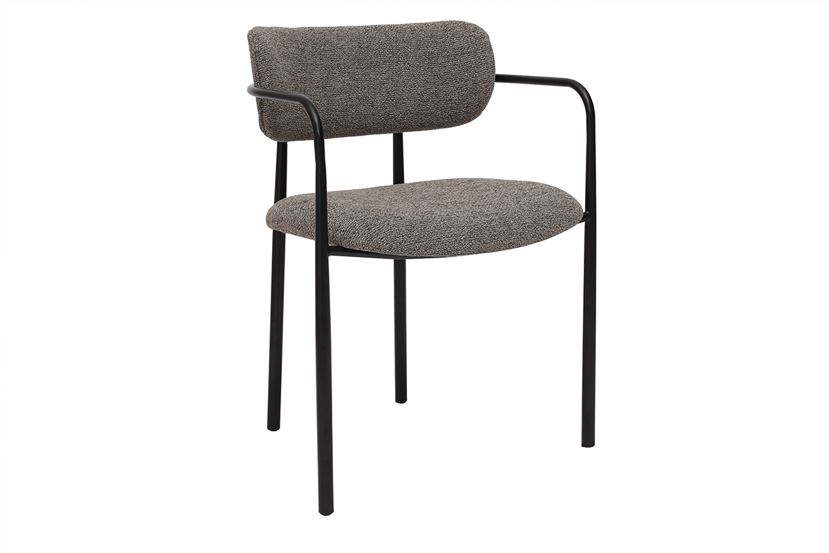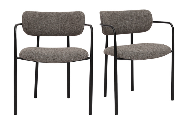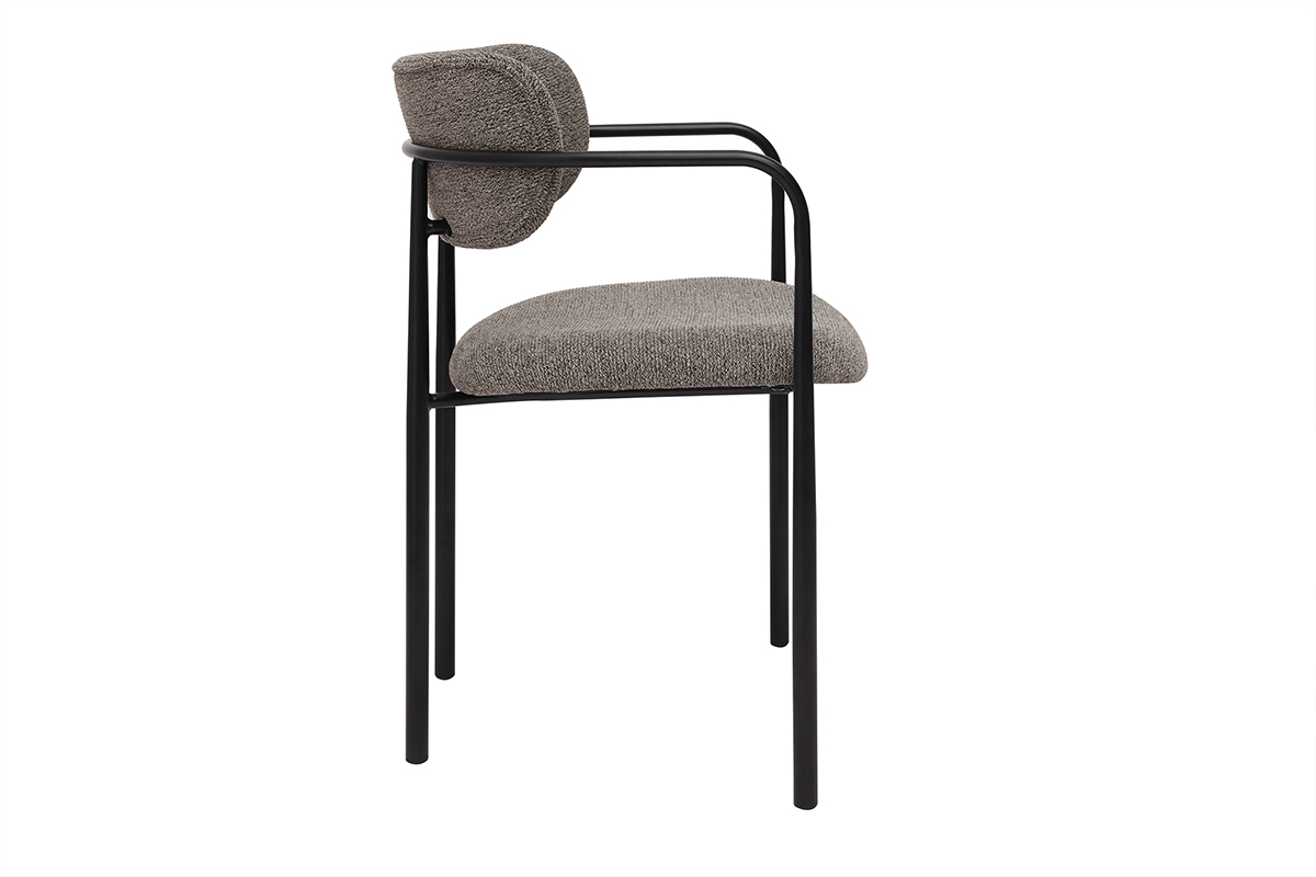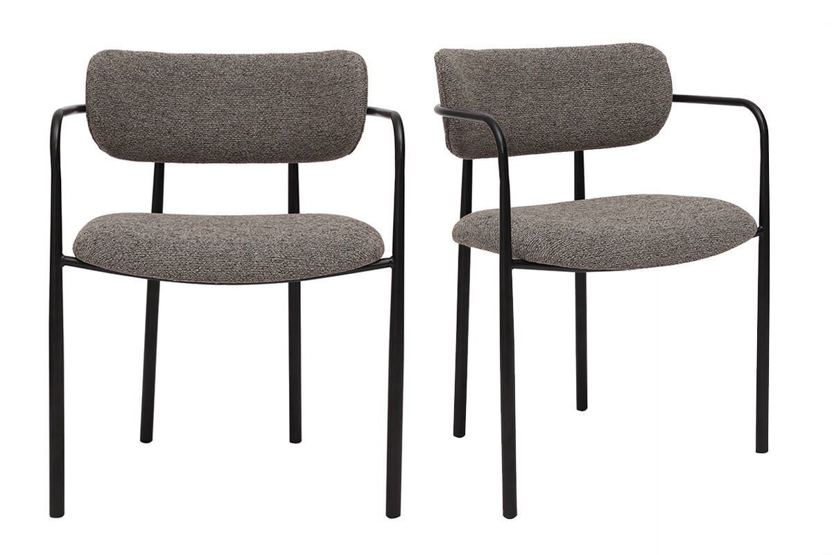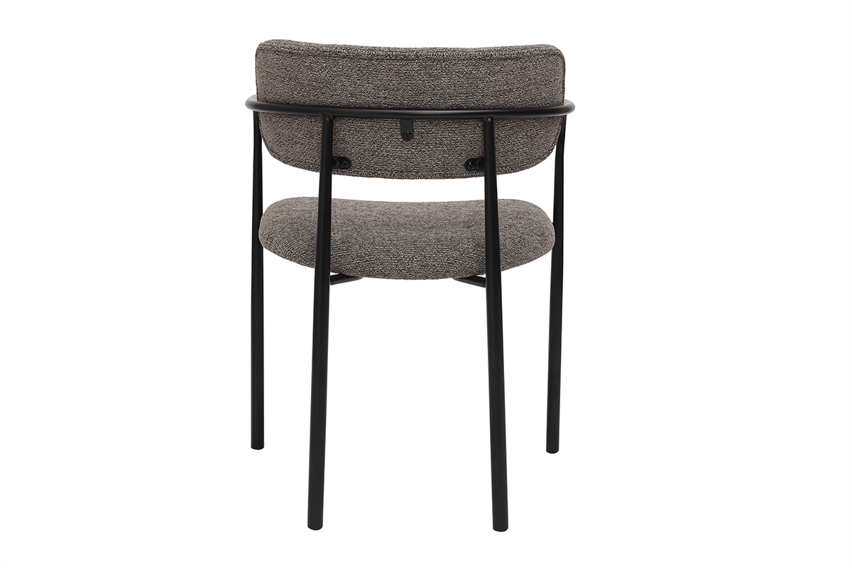 Ces assises se distinguent par leur silhouette épurée et leurs lignes modernes. Le cadre en métal noir confère une touche industrielle, tandis que l’assise et le dossier recouverts de tissu effet velours texturé ajoutent une sensation de luxe et de douceur. La teinte taupe, chaleureuse et actuelle, s’intègre harmonieusement dans une grande variété de styles d’intérieur, du contemporain au vintage, en passant par le bohème ou le scandinave.