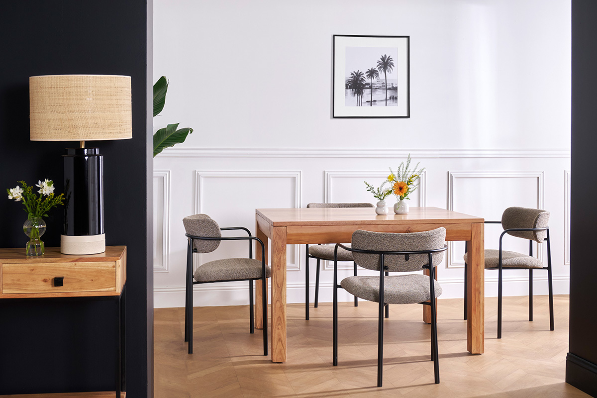 Le rembourrage (24 kg/m3) de l’assise et du dossier offre un excellent soutien, parfait pour les repas en famille, les soirées conviviales entre amis, ou encore les moments de travail ou de lecture prolongés. Les accoudoirs délicatement incurvés renforcent cette ergonomie, permettant une posture détendue et naturelle.