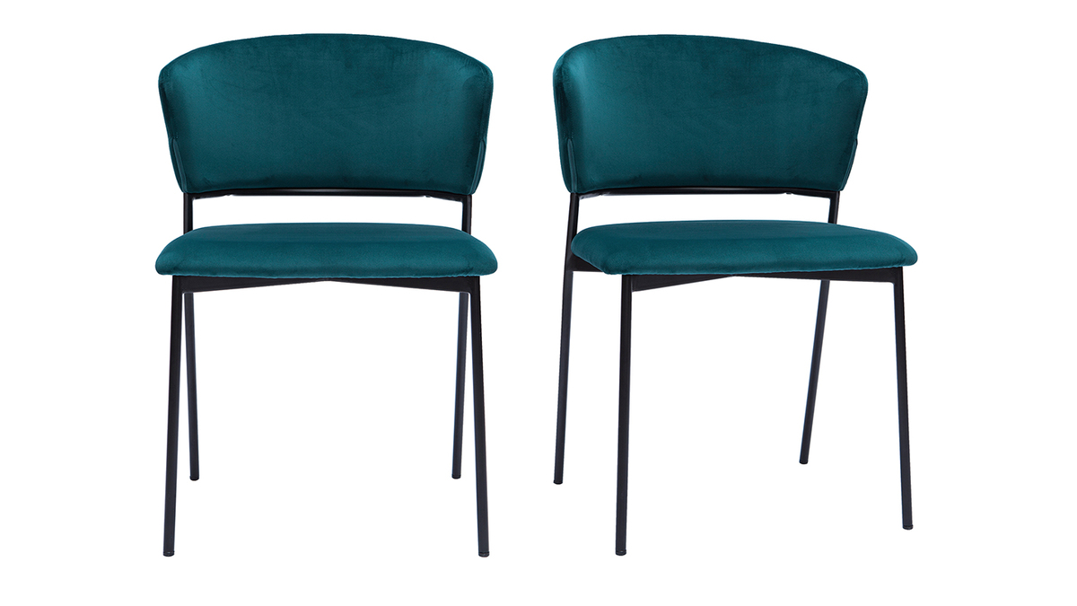 Leur structure en métal dessine une silhouette fine et délicate. D'une grande légèreté visuelle, ces chaises design habillent la table à manger avec élégance. Dossier et assise sont revêtus d'un magnifique velours gaufré bleu canard. Ce tissu au rendu chic par excellence s'invite à votre table pour lui redonner toute sa noblesse. L'élégance intemporelle des chaises FELIZ trouve sa place dans tous les intérieurs. Les salles à manger modernes comme les tables vintage ont trouvé leur perle rare.