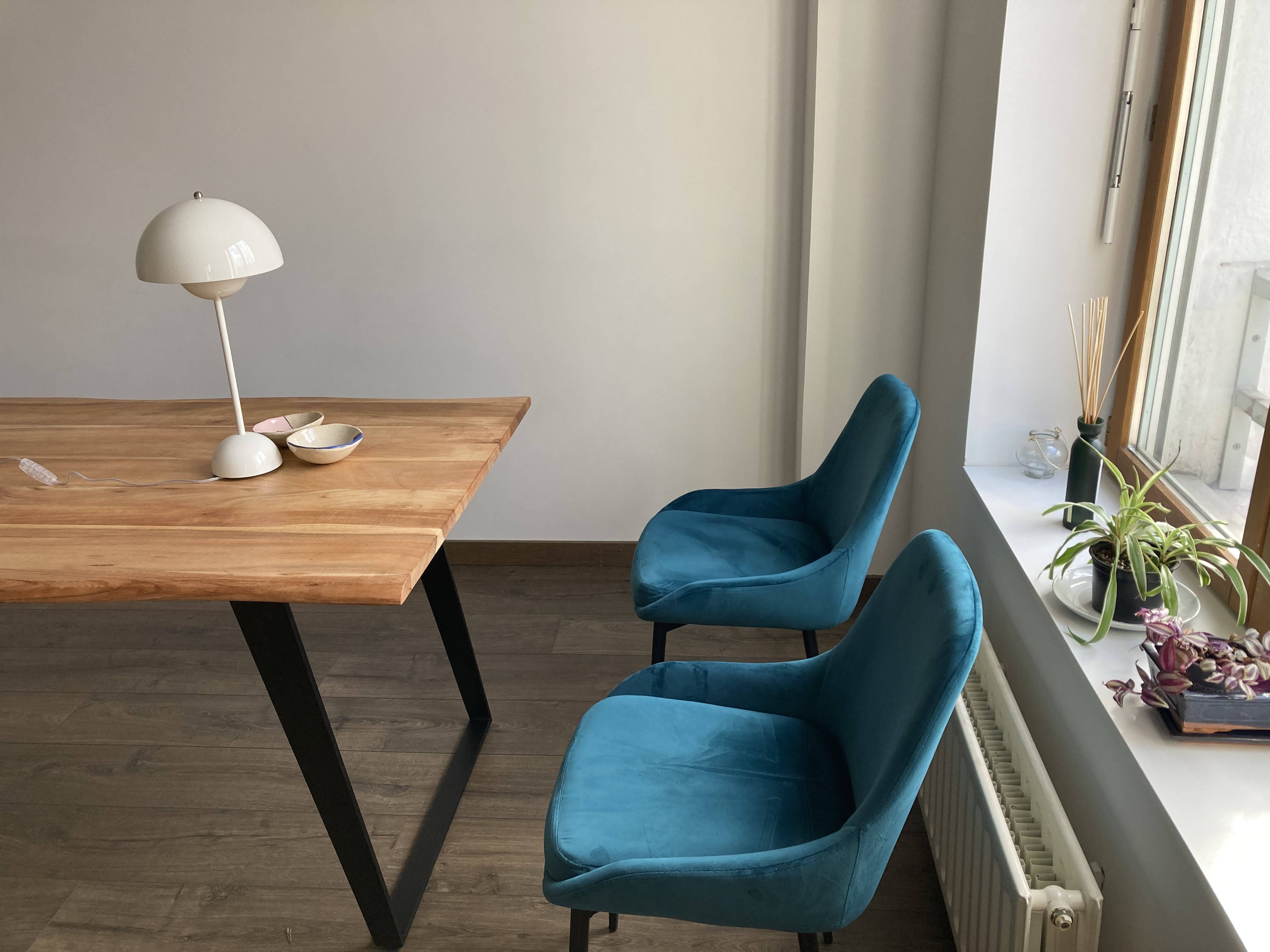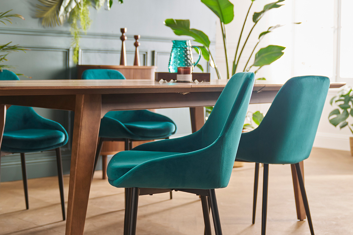 Les chaises HOLO associent l'élégance du velours à de belles lignes travaillées pour une salle à manger chic et cosy !