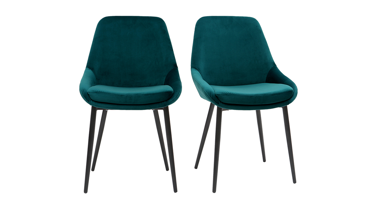 Le velours bleu pétrole et le piètement fin en métal s'associe pour former un look ultra tendance et donner à ces chaises design un style délicat et raffiné. Le revêtement en tissu velours au toucher très agréable est idéal pour une salle à manger alliant charme et douceur. Matériaux tendances, coloris intemporel, formes tout en courbes...Tous les ingrédients sont réunis pour que ces chaise de salle à manger habillent d'une élégance intemporelle votre coin repas.