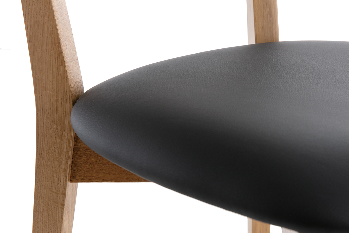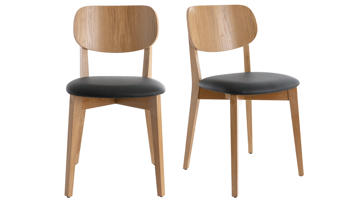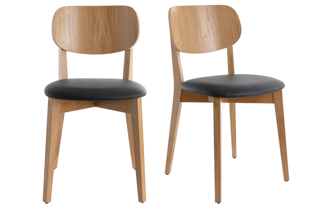 Les chaises LUCIA s'inscrivent dans la lignée du design scandinave des années 50. Loin des effets de mode, ces chaises en bois clair modernes s'intègrent durablement dans nos intérieurs. Le dossier en contreplaqué courbé et l'assise rembourrée (densité de la mousse 35 Kg/m³) offrent un excellent confort. Le joli revêtement noir (100% polyuréthane) qui habille l'assise s'accorde à merveille avec le bois naturel.