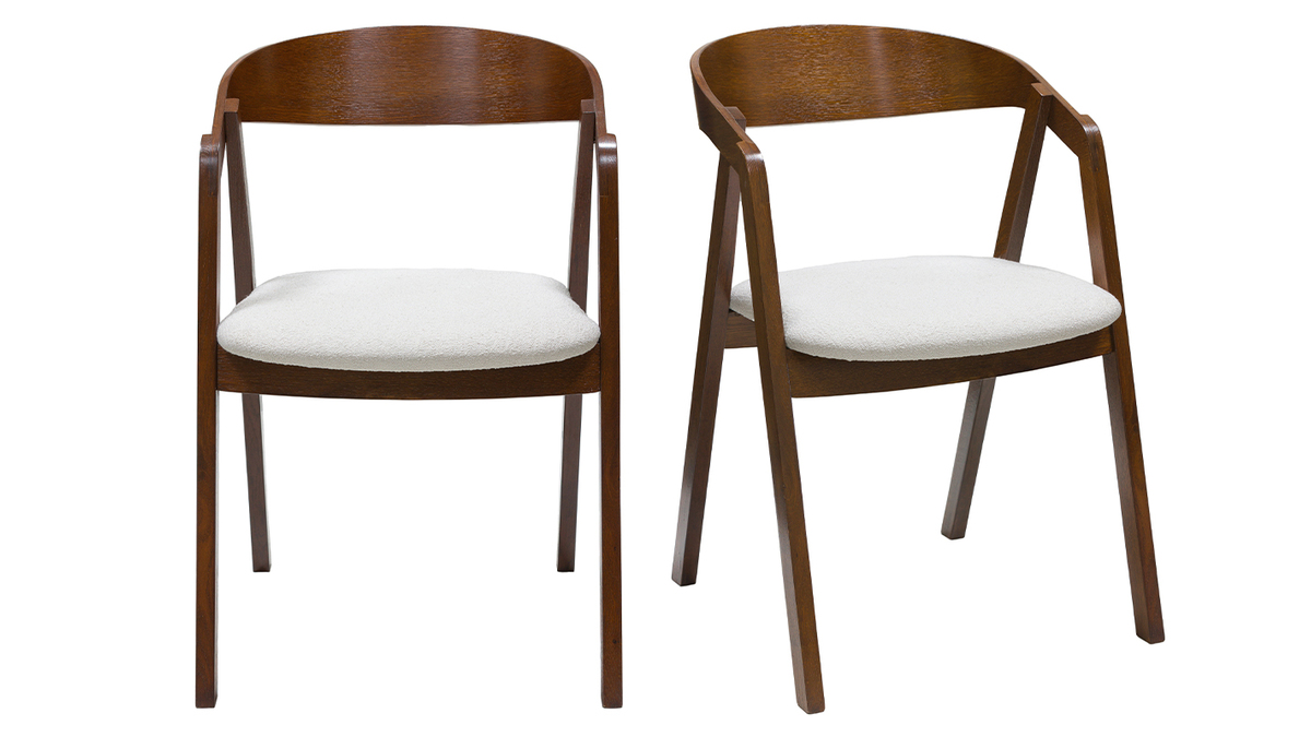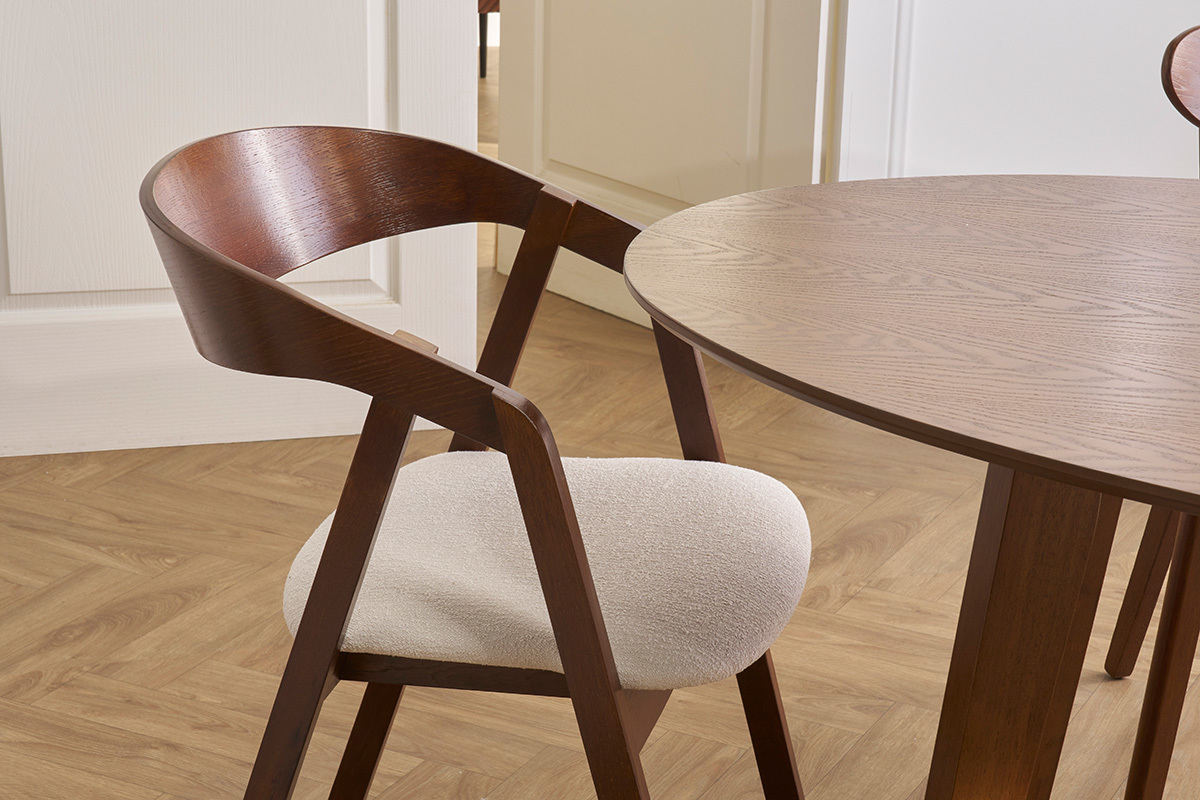 Conçues pour offrir le soutien nécessaire et le confort indispensable des repas conviviaux, ces chaises de salles à manger design en bois foncé et tissu bouclette blanc scellent la promesse de nombreuses heures, bien installé !