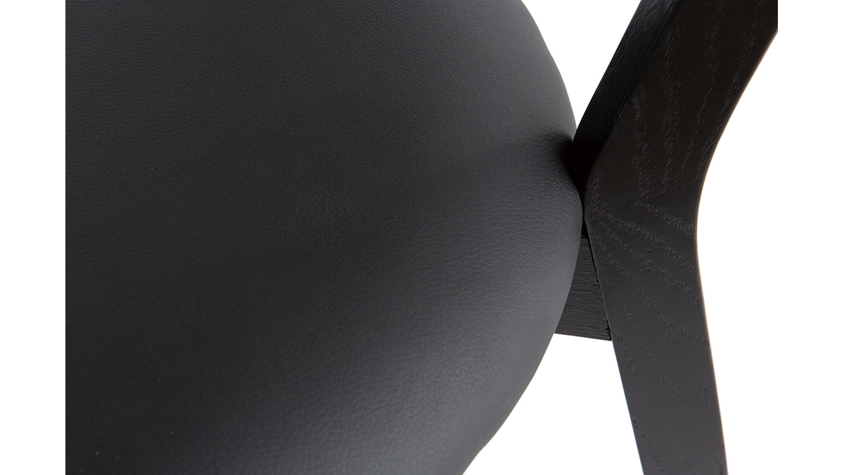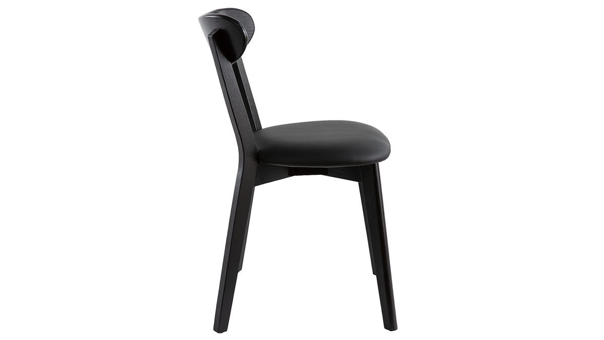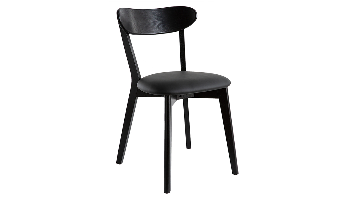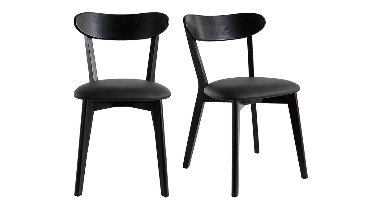 Fabriquées en contreplaqué chêne teinté noir, ces petites chaises aux dimensions L44 x P56 x H82 cm sont à la fois légères et robustes. Elles se déplacent en un clin d'oeil selon nos besoins et se nettoient très facilement à l'aide d'un chiffon doux légèrement humide. Leur dossier courbé et leur assise rembourrée (densité de la mousse 35 Kg/m3) garantissent un exellent confort pour un usage quotidien. L'assise est habillée d'un revêtement noir (100% polyuréthane) qui se marie à merveille avec le bois noir. Le vernis transparent apposé sur le chêne plaqué nourrit et protège le bois.