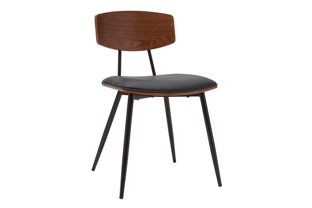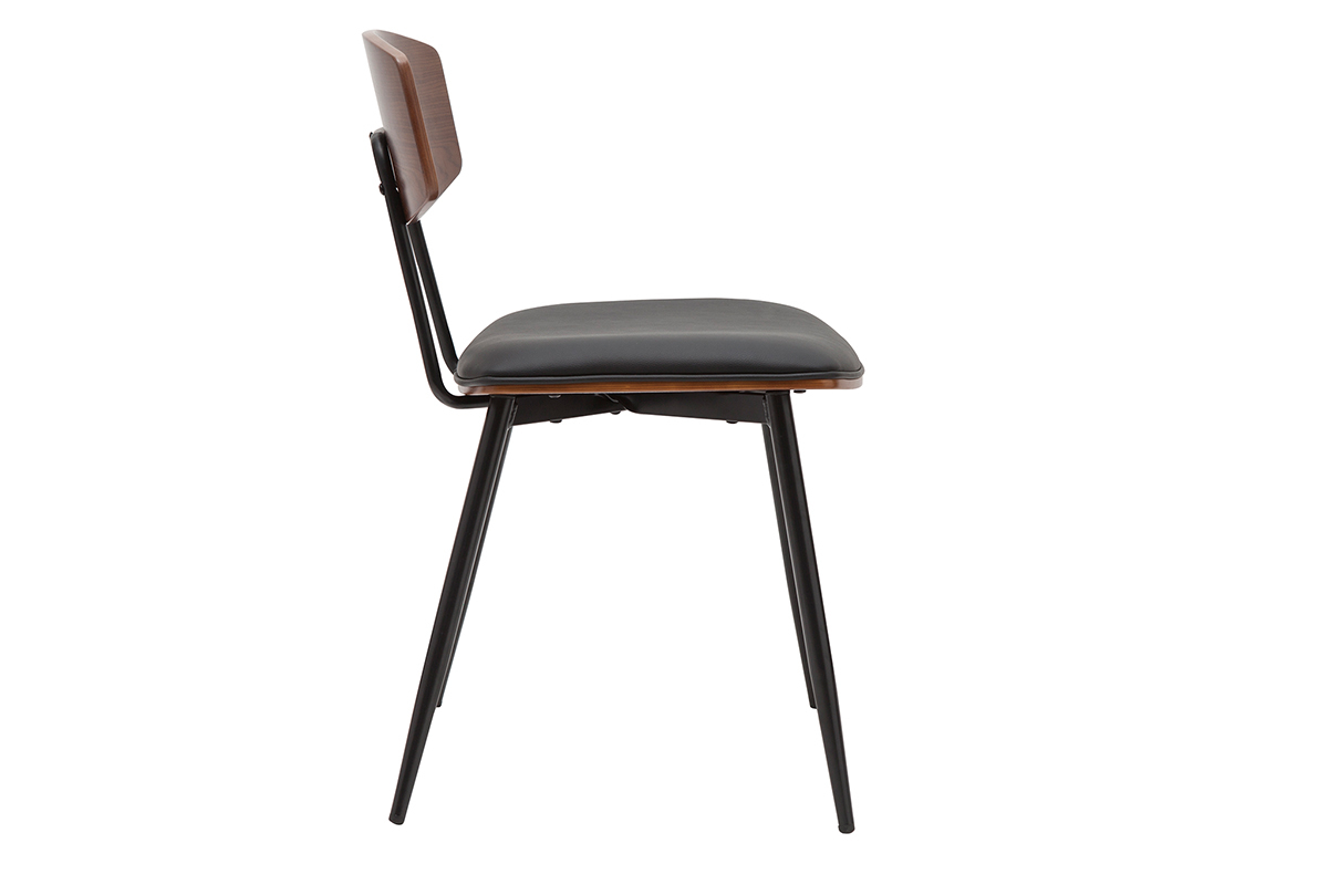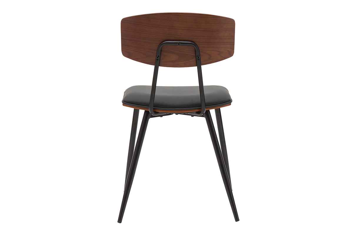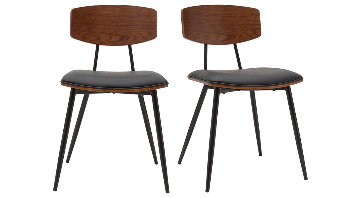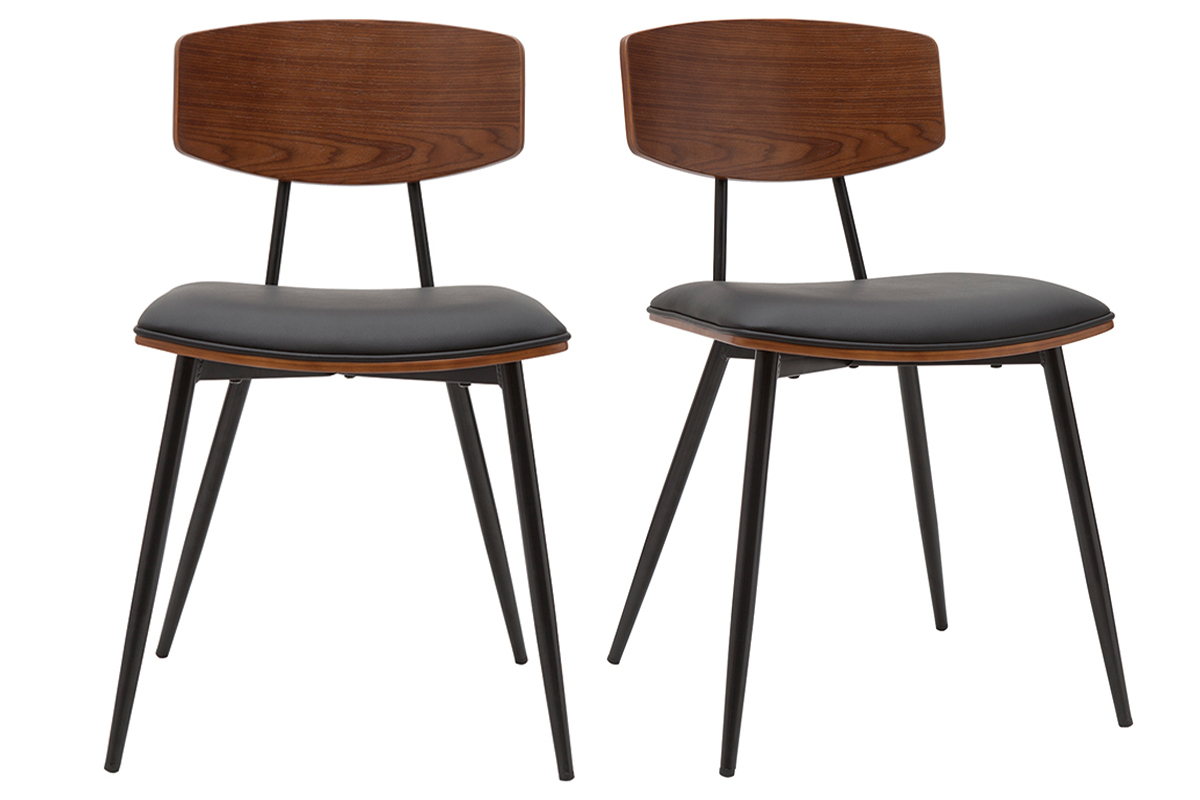 Chaises vintage en bois foncé noyer et métal noir JOLINE vendues par lot de 2. Montage simple, seuls les pieds sont à fixer.