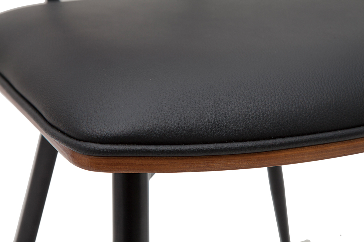 L’assise de ces chaises est recouverte d’un revêtement polyuréthane noir de haute qualité. Ce matériau d'une densité de 24kg/m3 offre non seulement un confort exceptionnel, mais ajoute également une dimension visuelle apaisante à votre intérieur. La forme légèrement incurvée du dossier et de l’assise assure un soutien optimal, vous permettant de profiter de longues heures de convivialité sans inconfort.