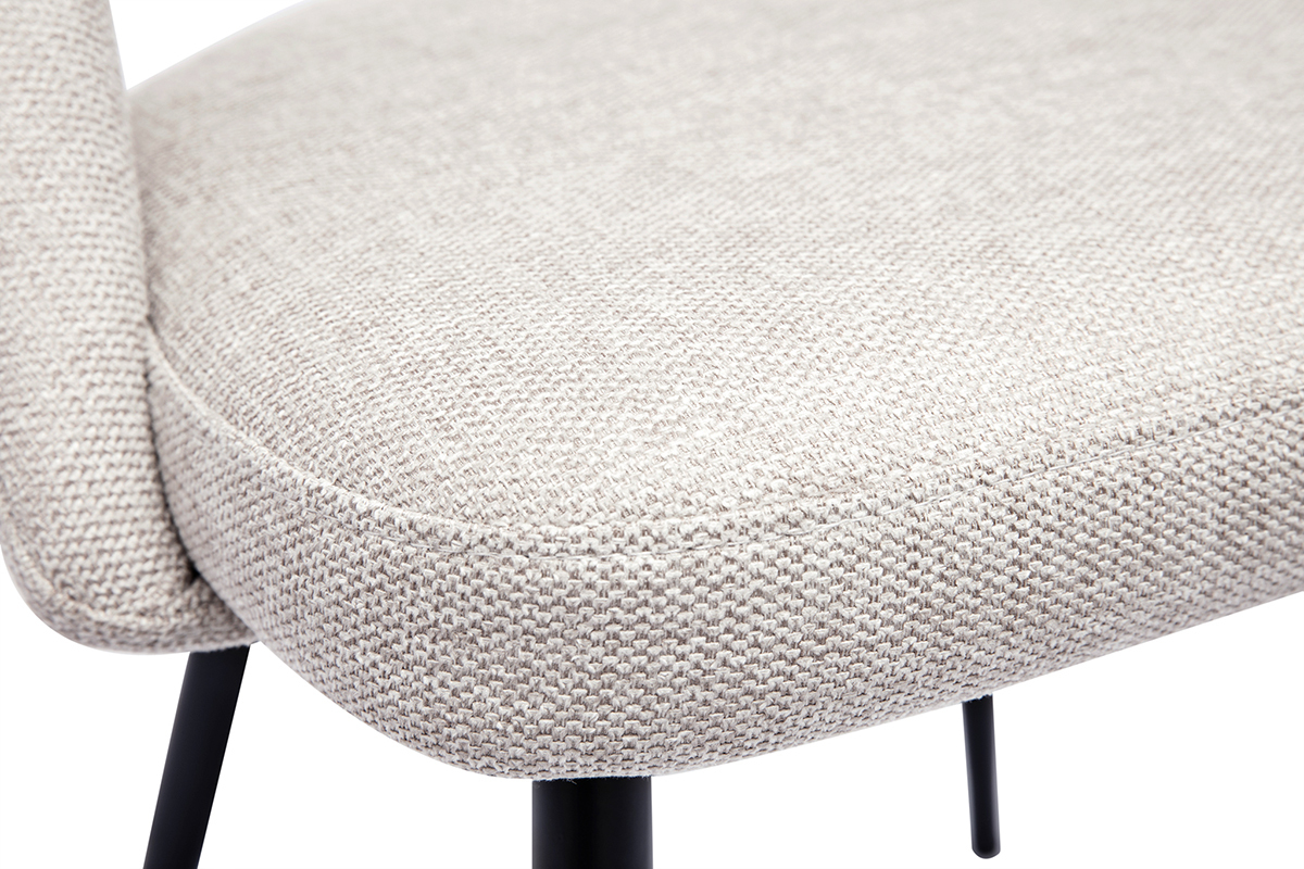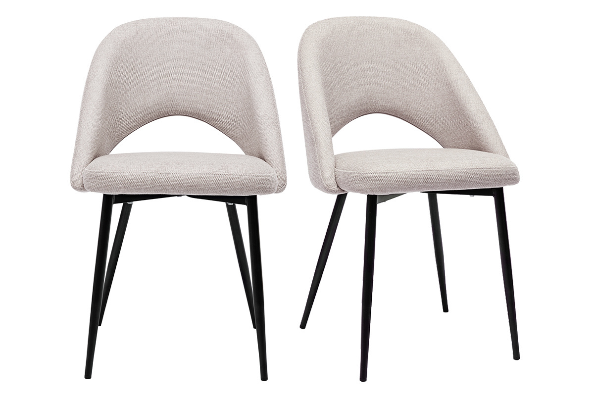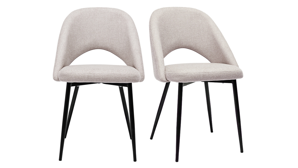Ces assises au charme subtilement rétro sont synonymes de convivialité et de partage. Leur tissu effet velours texturé (100% polyester) se décline dans un coloris beige, doux et intemporel. Les pieds fuselés en métal noir apportent de la légèreté à la silhouette et s'accordent aisément avec tous les styles de tables à manger.