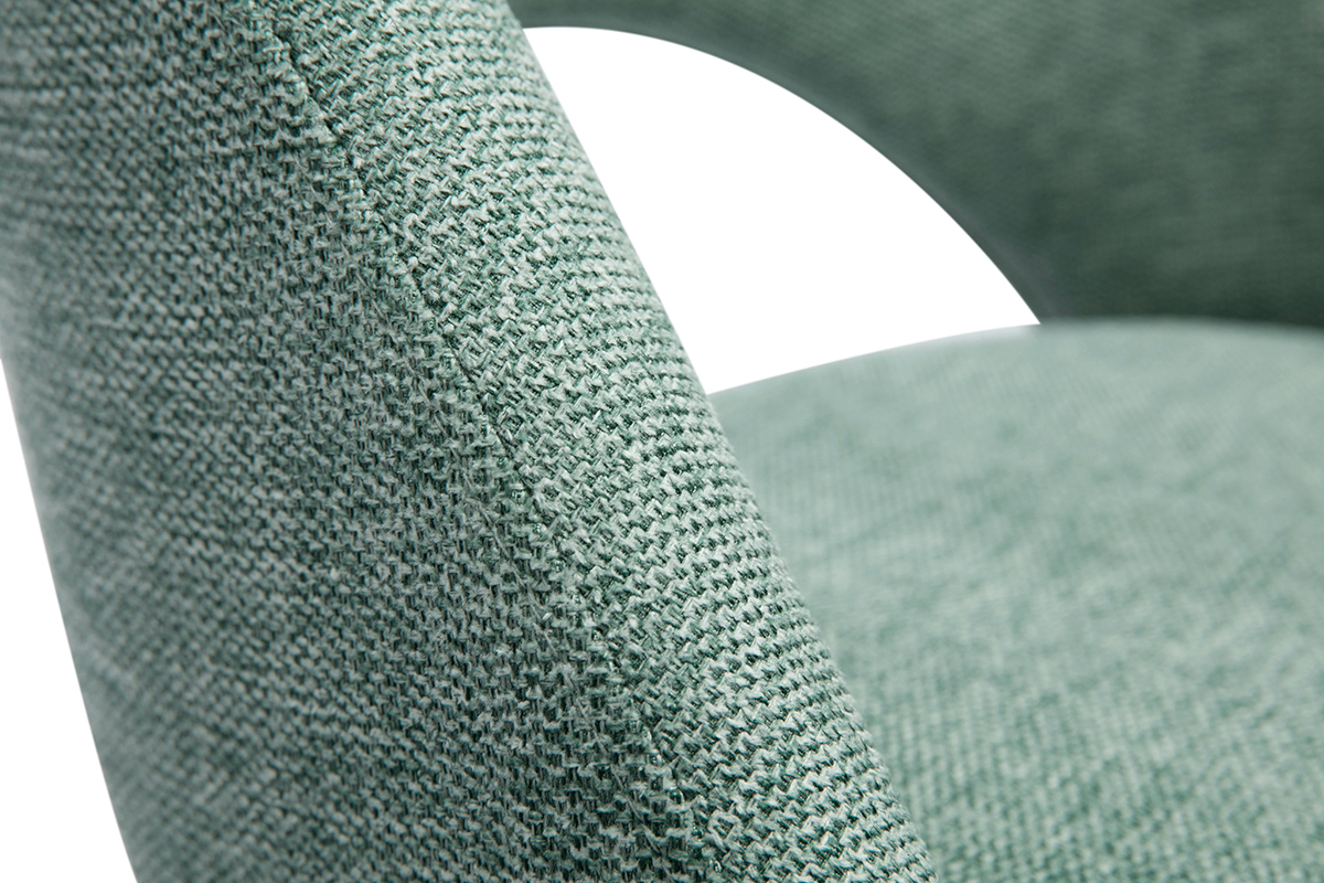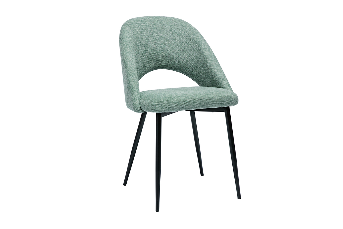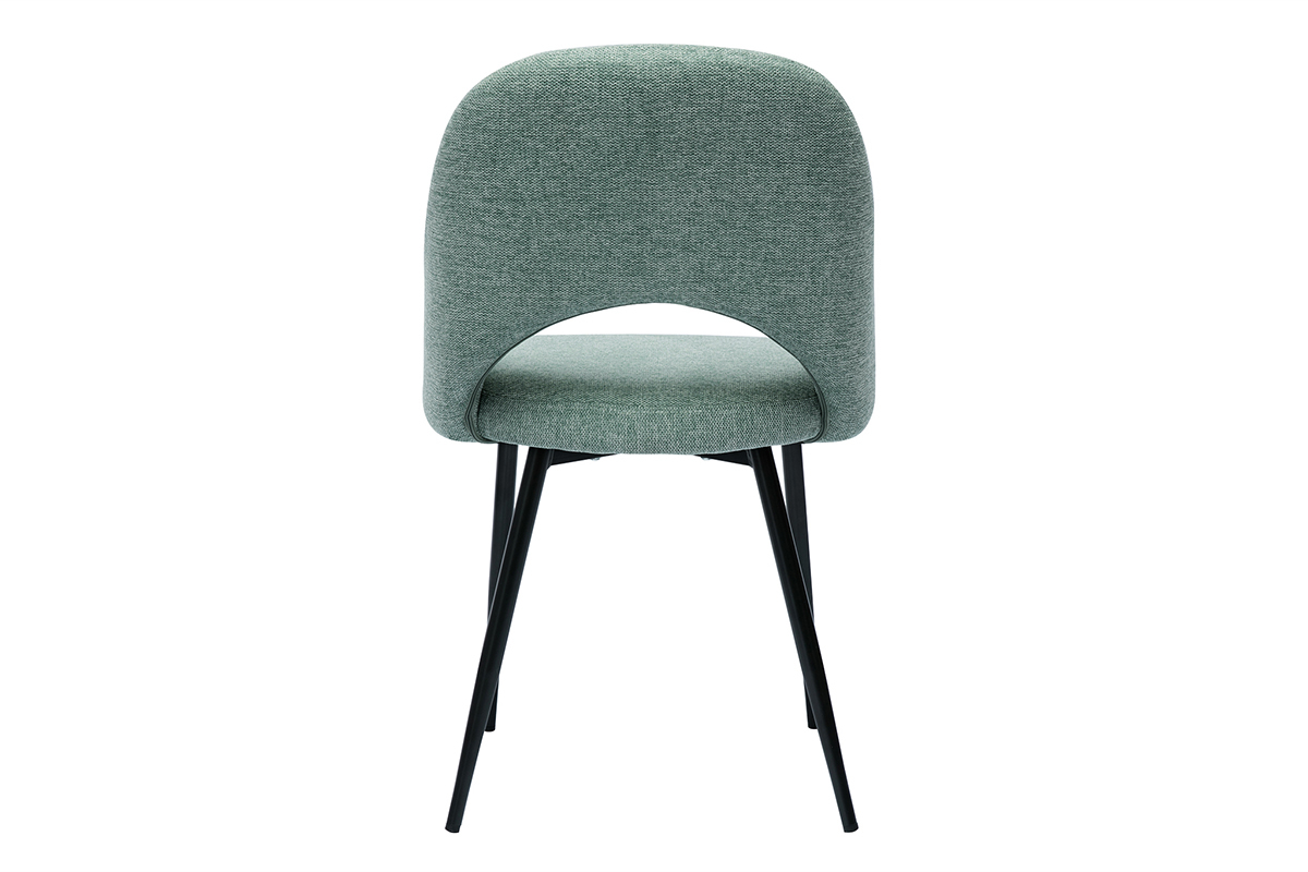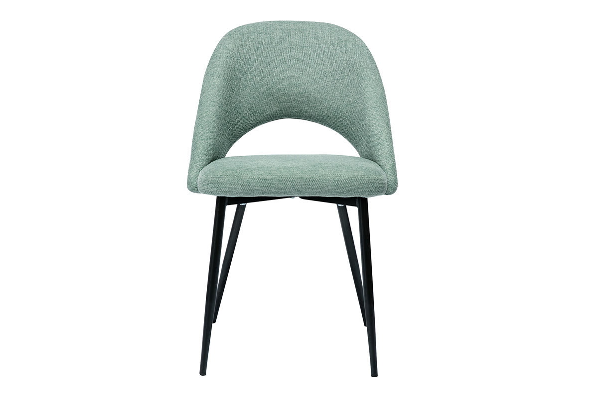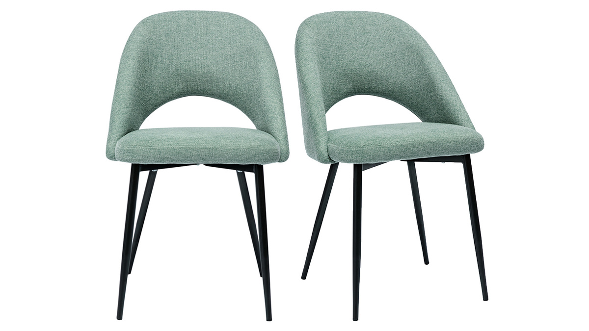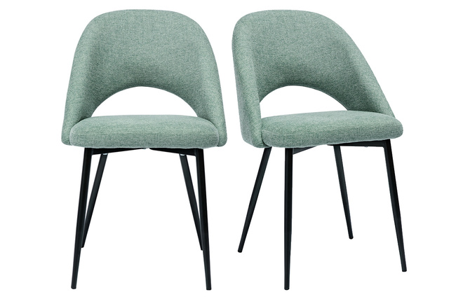 Ces assises au charme subtilement rétro sont synonymes de convivialité et de partage. Leur tissu effet velours texturé (100% polyester) se décline dans un coloris vert céladon ultra tendance. Les pieds fuselés en métal noir apportent de la légèreté à la silhouette et s'accordent aisément avec tous les styles de tables à manger.