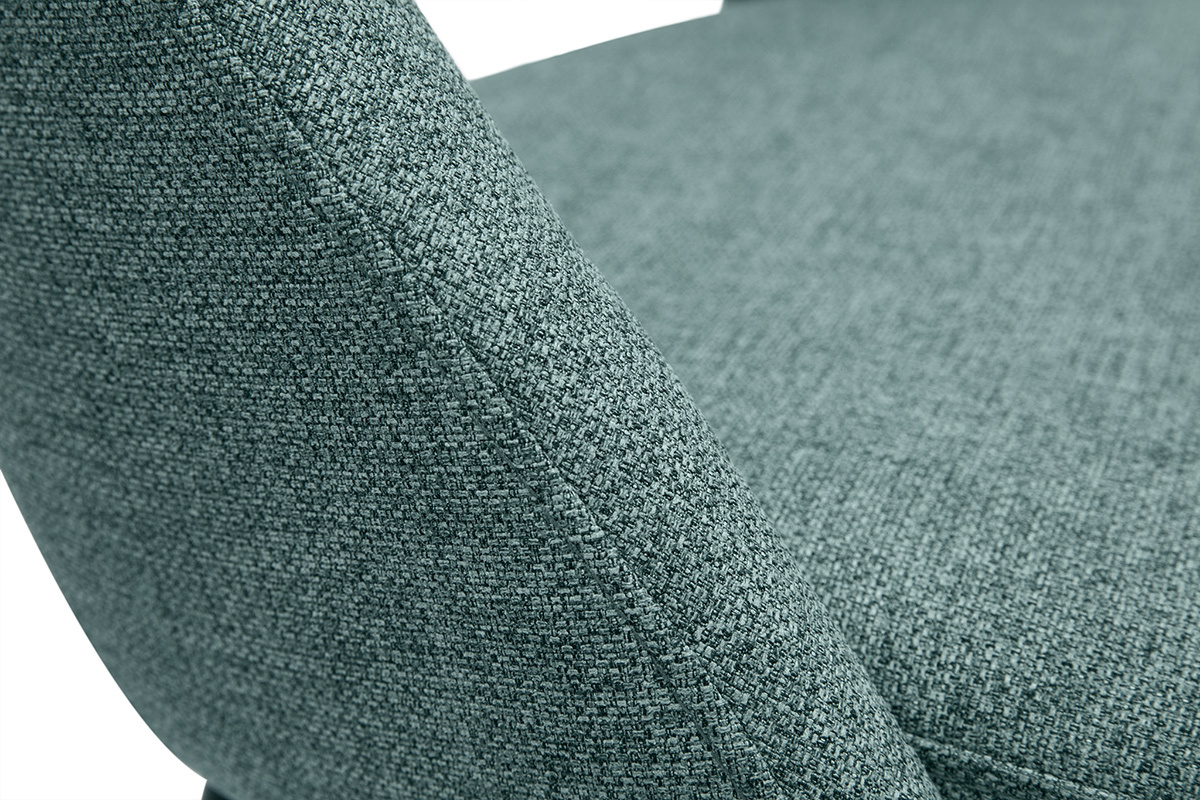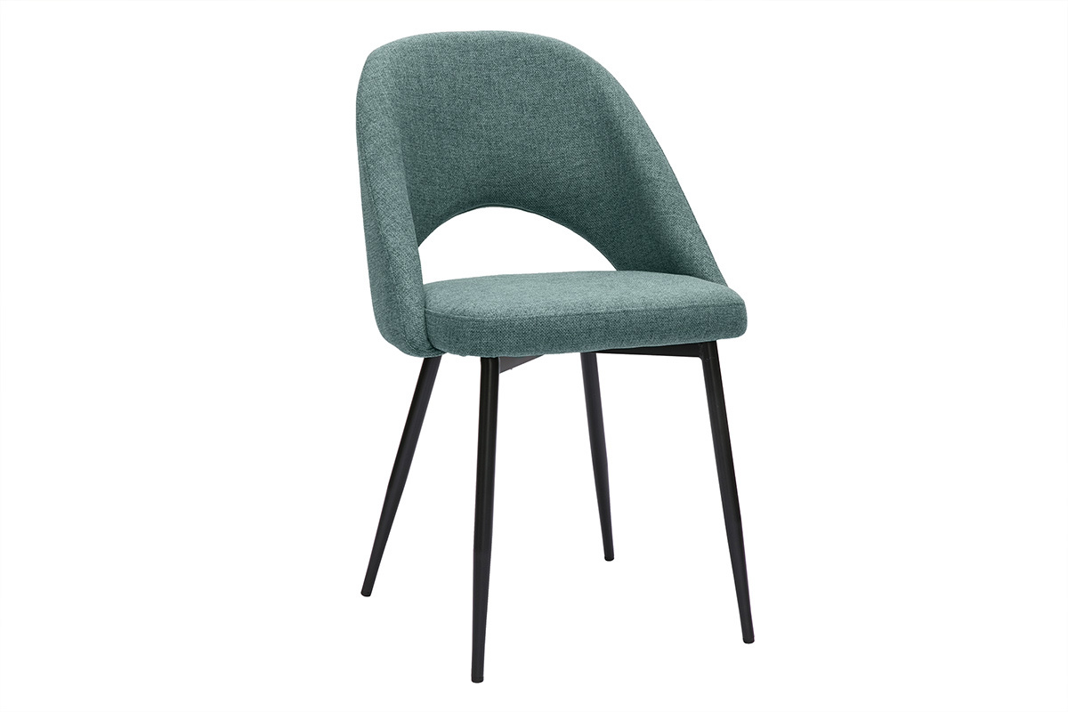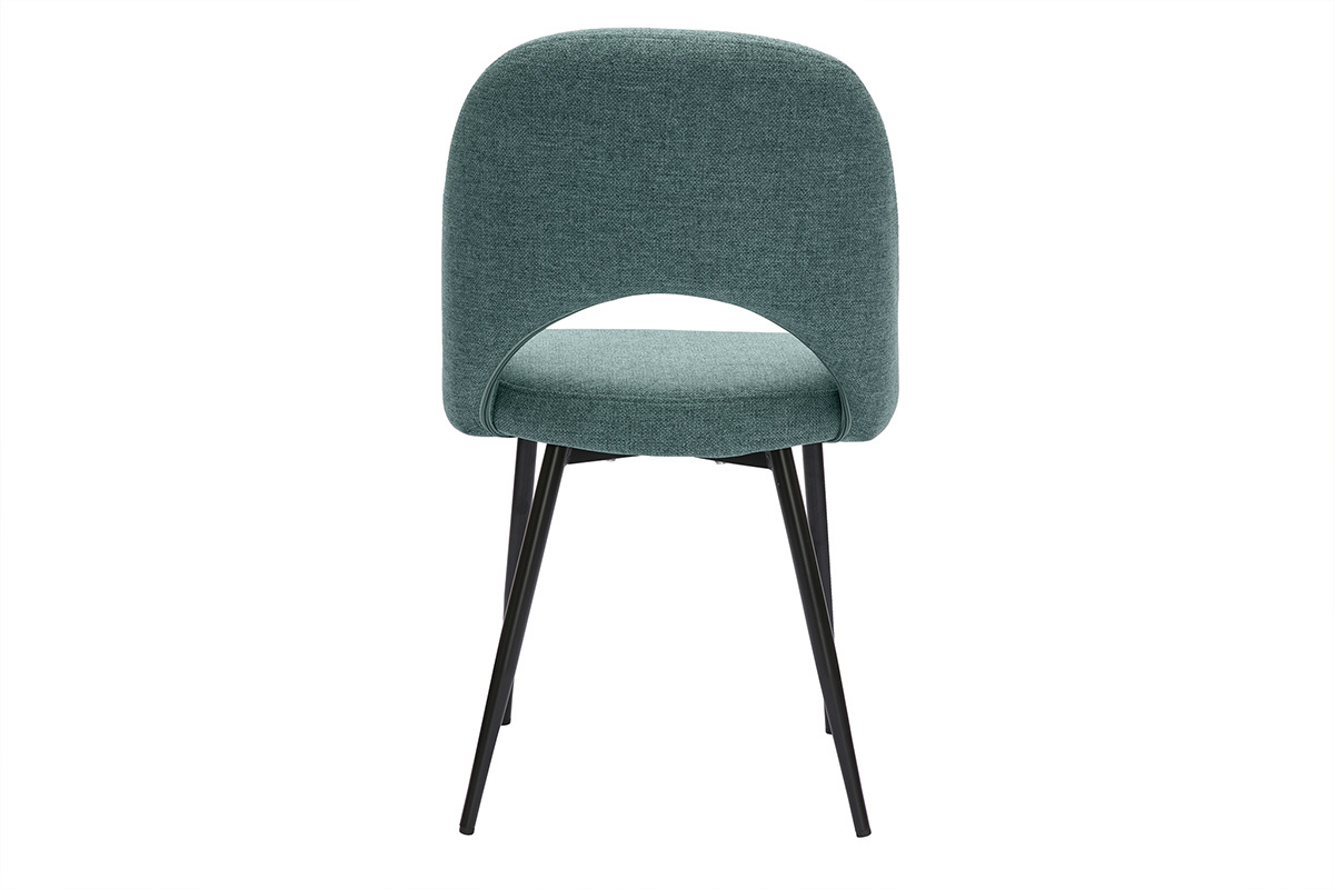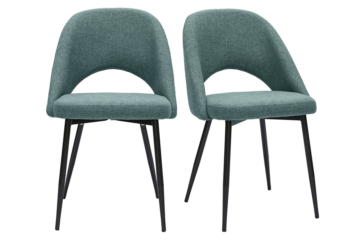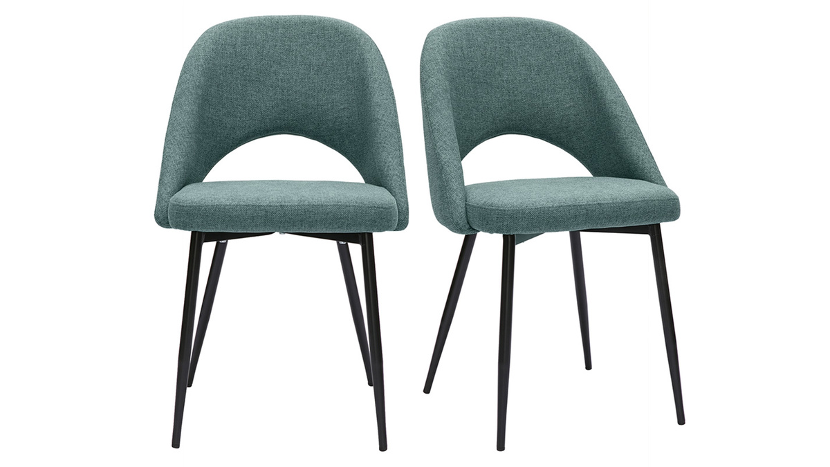 Ces assises au charme subtilement rétro sont synonymes de convivialité et de partage. Leur tissu se décline dans un coloris vert de gris, une teinte chaleureuse et envoûtante. Les pieds fuselés en métal noir apportent de la légèreté à la silhouette et s'accordent aisément avec tous les styles de tables à manger.
