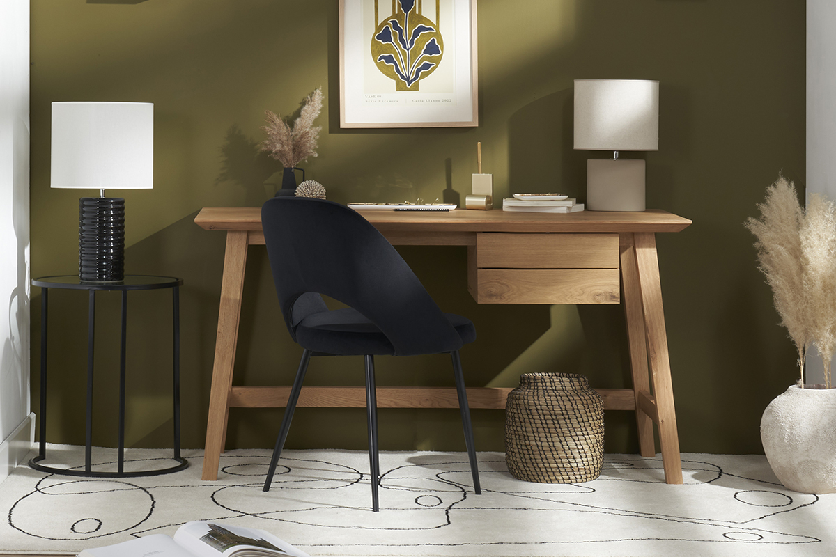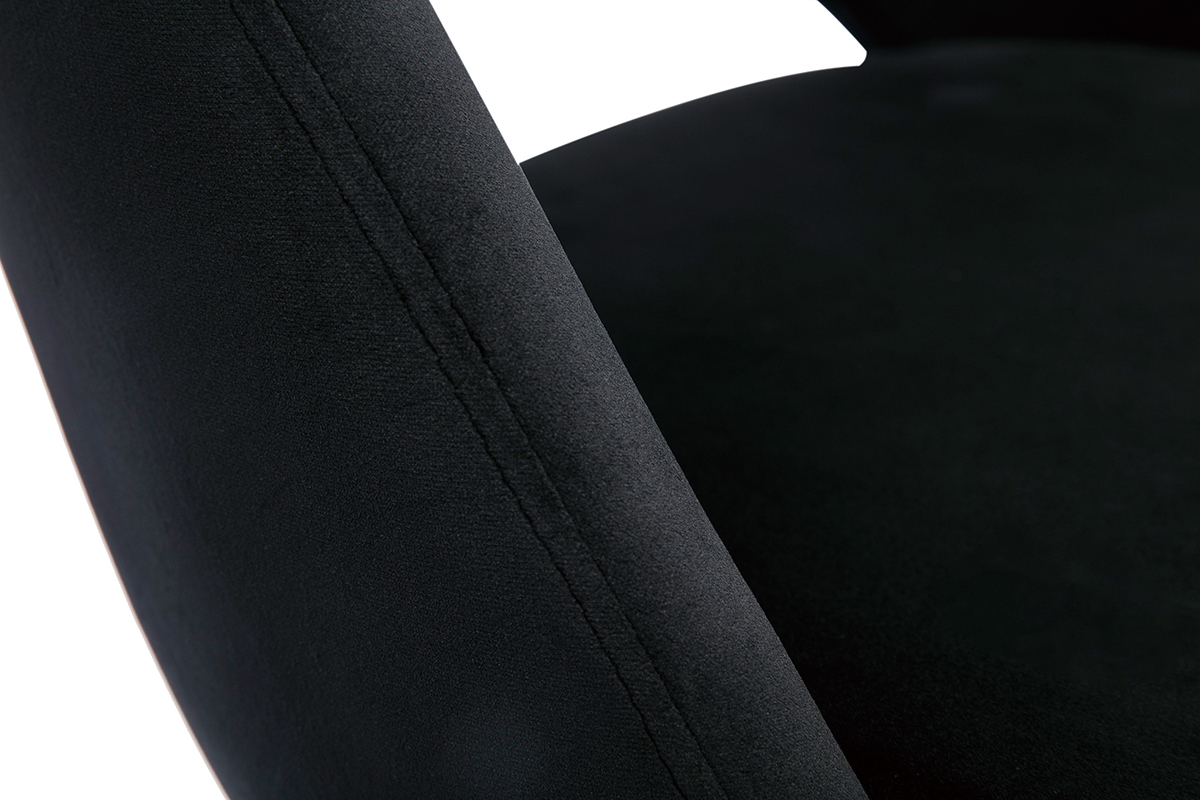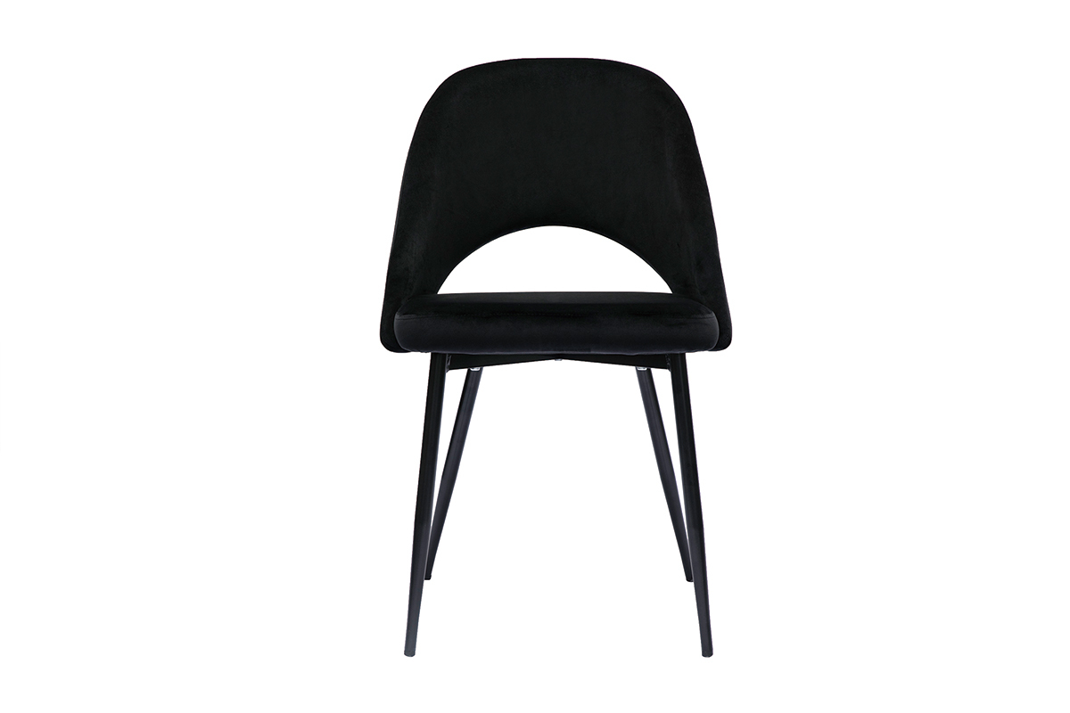 Ces assises au charme subtilement rétro sont synonymes de convivialité et de partage. Leur revêtement en tissu velours (100% polyester) se décline en noir, une teinte sobre et élégante par excellence. Les pieds fuselés en métal noir apportent de la légèreté à la silhouette et s'accordent aisément avec tous les styles de tables à manger.