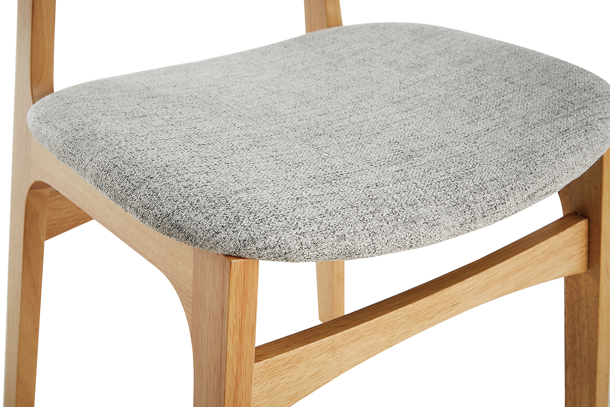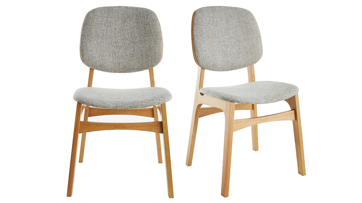 Sous des lignes à l'inspiration vintage tout en rondeur, ce modèle inspiré des 50's se démarque par un joli jeu de matières ! Les tonalités chaudes et lumineuses de la structure en bois clair contrastent élégamment avec le revêtement en tissu gris clair. Une finition textile agréable au toucher qui apportera de la douceur à votre coin repas. Volumes maîtrisés et design sobre : ces chaises vintage s'envisagent dans de nombreuses ambiances déco et tiendront une place de choix dans un coin repas à l'ambiance rétro.