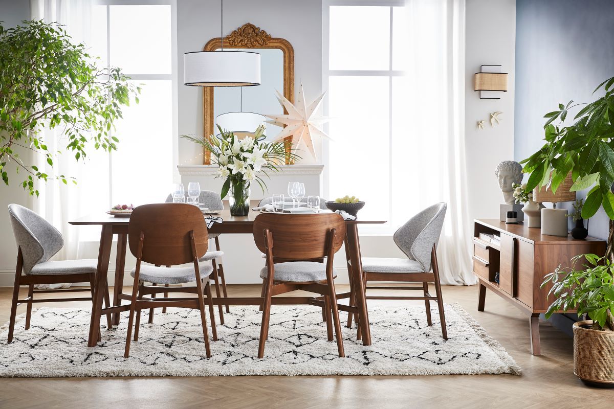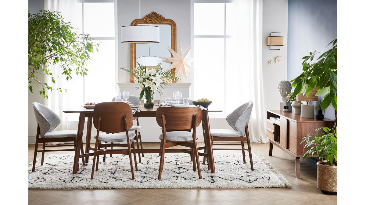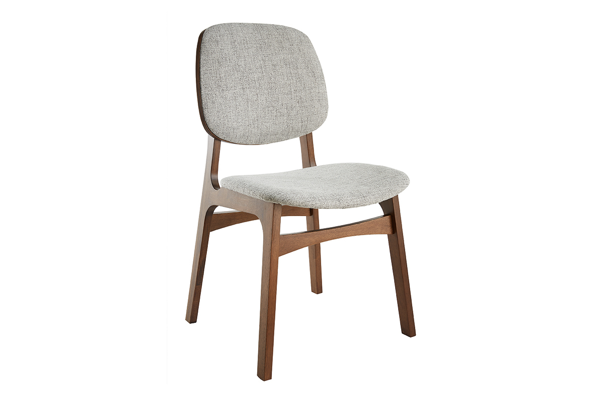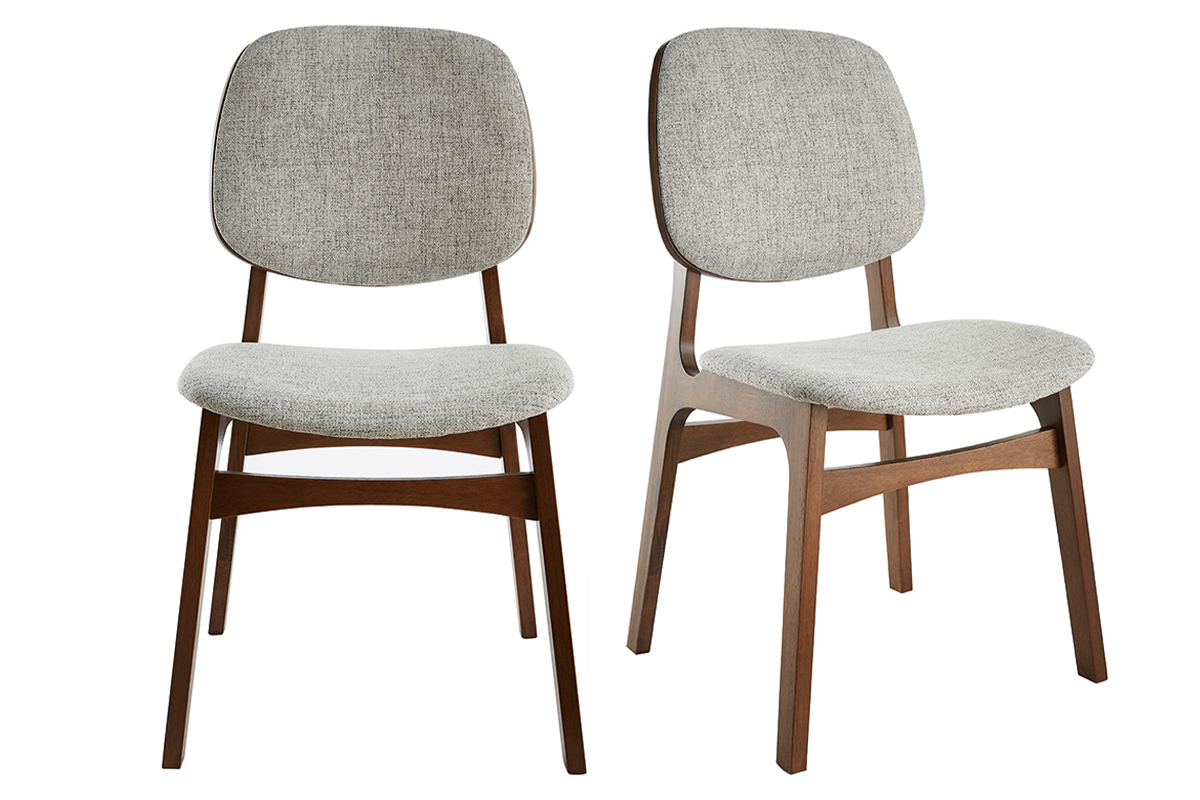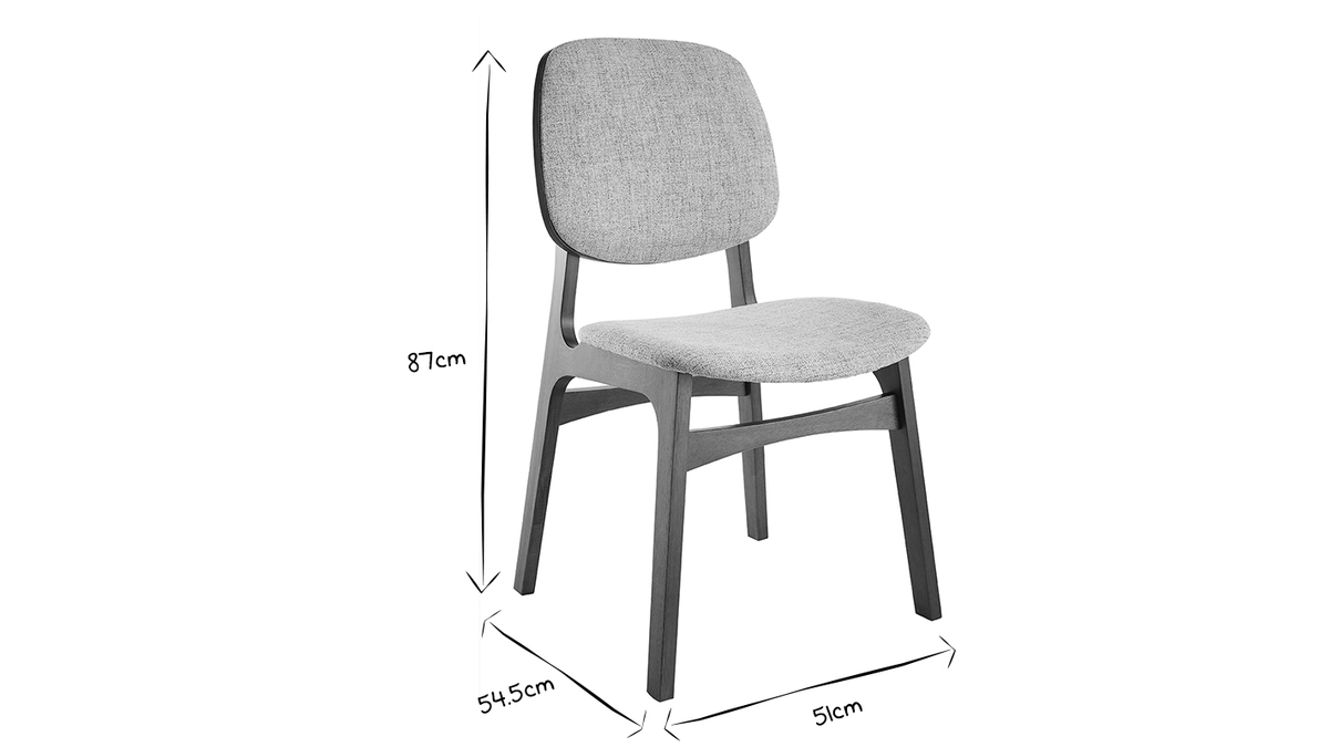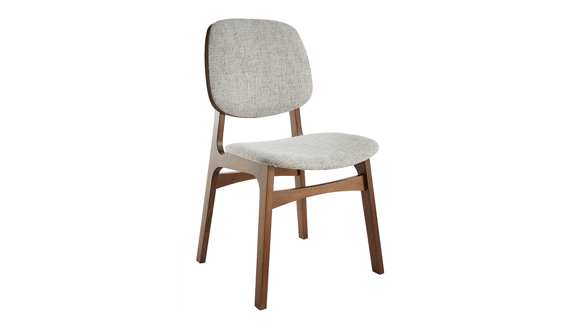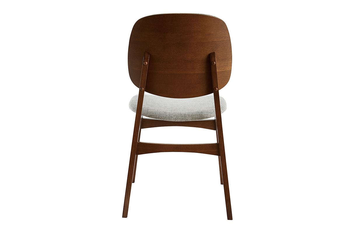 Sous des lignes à l'inspiration vintage tout en rondeur, ce modèle inspiré des 50's se démarque par un joli jeu de matières ! Les tonalités chaudes de la structure en bois foncé contrastent élégamment avec le revêtement en tissu gris clair. Une finition textile agréable au toucher qui apportera de la douceur à votre coin repas. Volumes maîtrisés et design sobre : ces chaises vintage s'envisagent dans de nombreuses ambiances déco et tiendront une place de choix dans un coin repas à l'ambiance rétro.