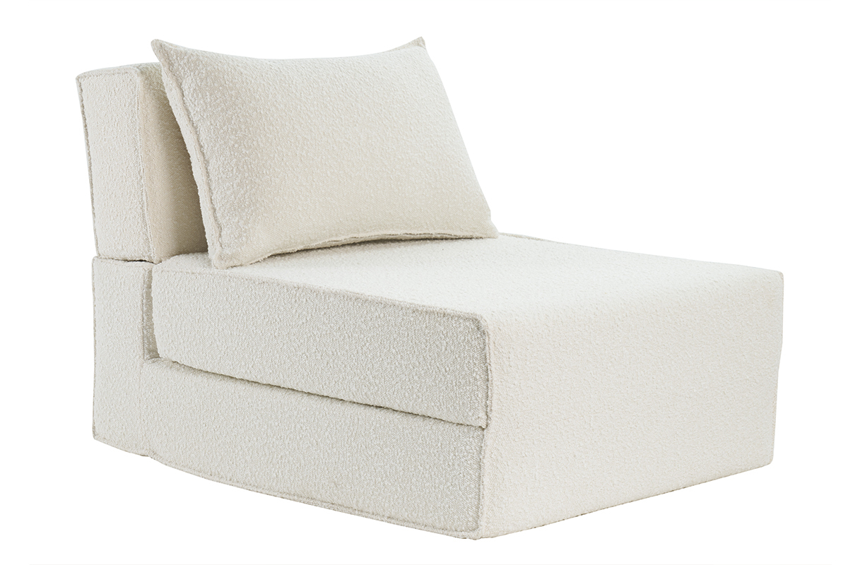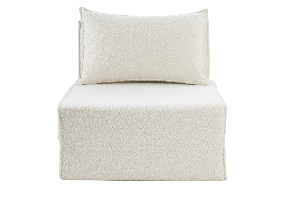 Habillée d'un revêtement 100% polyester aussi agréable au regard qu'au toucher, cette chauffeuse-lit en tissu effet laine bouclée blanc voit son dossier bas et sa large assise garnis respectivement d'une mousse densité 19 kg/m³ et 28 kg/m³. Pas l'ombre d'un faux pli quant au choix des matières qui invitent à lâcher prise...