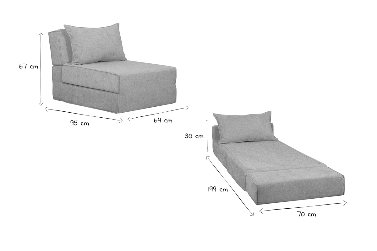 Dimensions chauffeuse ouverte : L70 x P199 x H30 cm