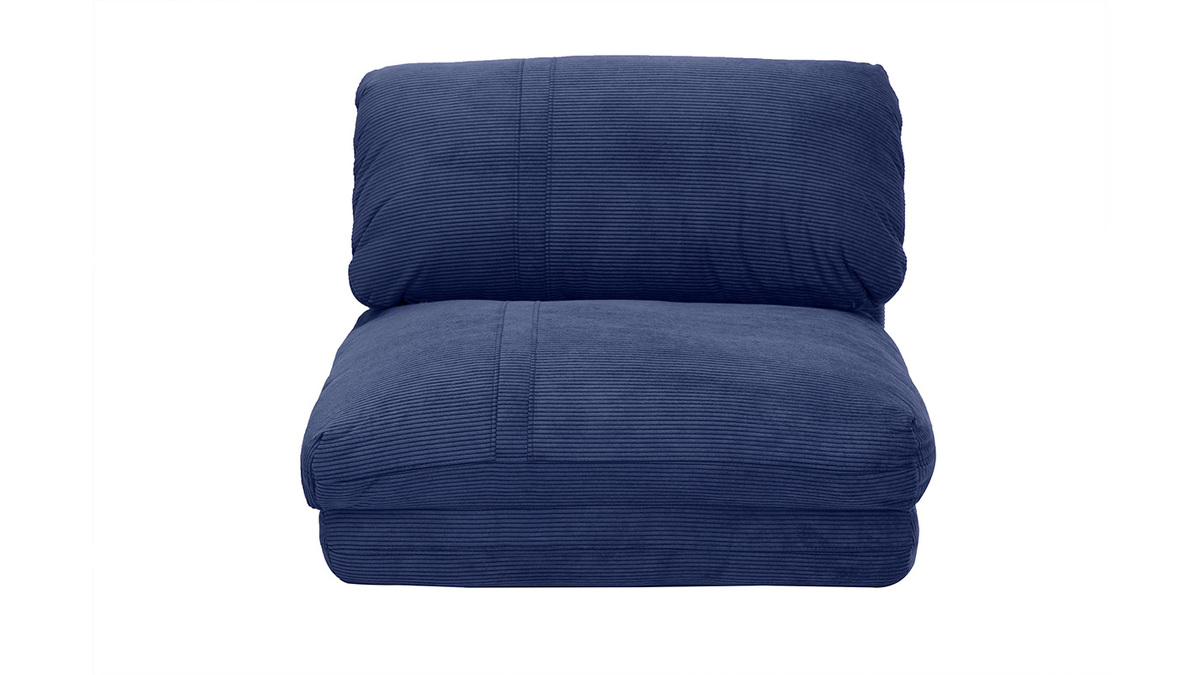 Idéale pour réchauffer une pièce de vie et lui apporter une petite touche vintage juste ce qu'il faut, cette chauffeuse 1 place s'habille d'un tissu velours côtelé. Retour remarqué dans les intérieurs les plus tendances, ce revêtement à consonance rétro se pare d'un mystérieux coloris bleu foncé. Intemporel et indémodable, le design douillet et propice à la détente de cette chauffeuse convertible sera parfait pour instaurer une ambiance cocooning dans votre pièce de vie !