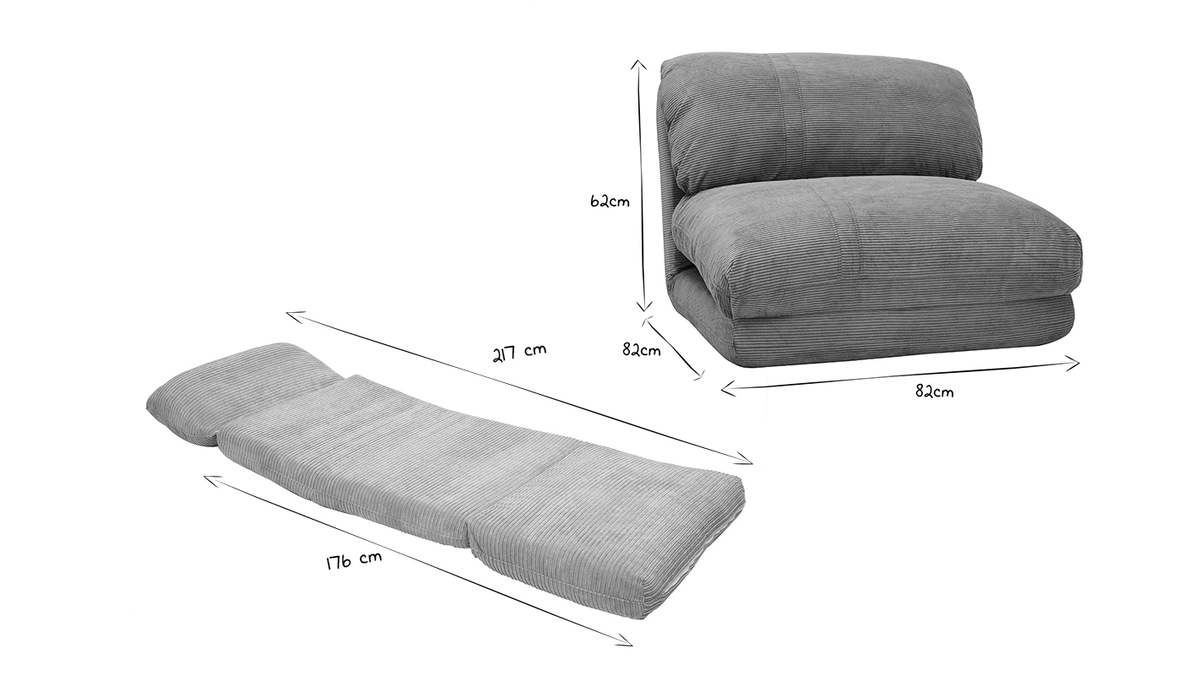 Dimensions dépliée : L82 x P176-217 x H12-18.5 cm