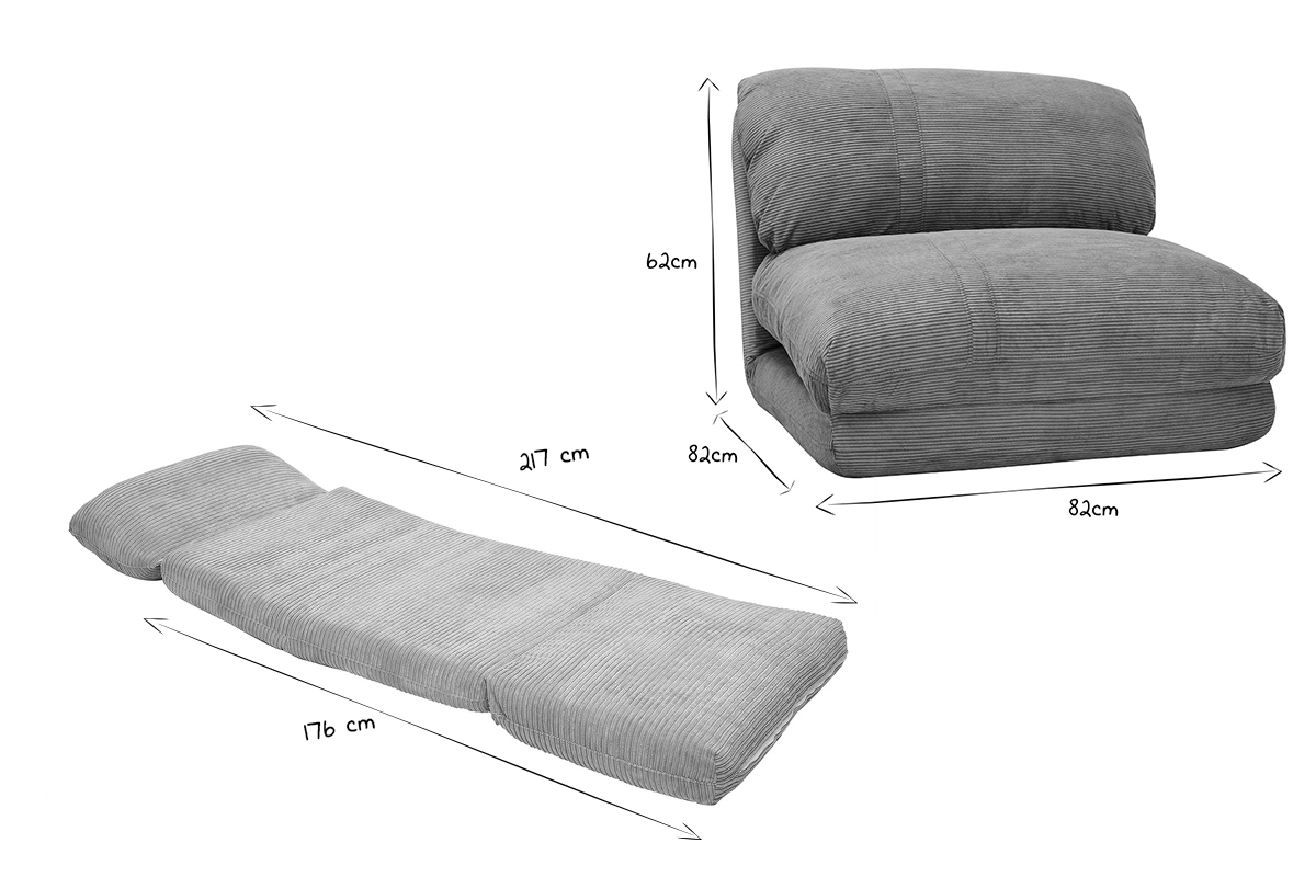 Dimensions dépliée : L82 x P176-217 x H12-18.5 cm