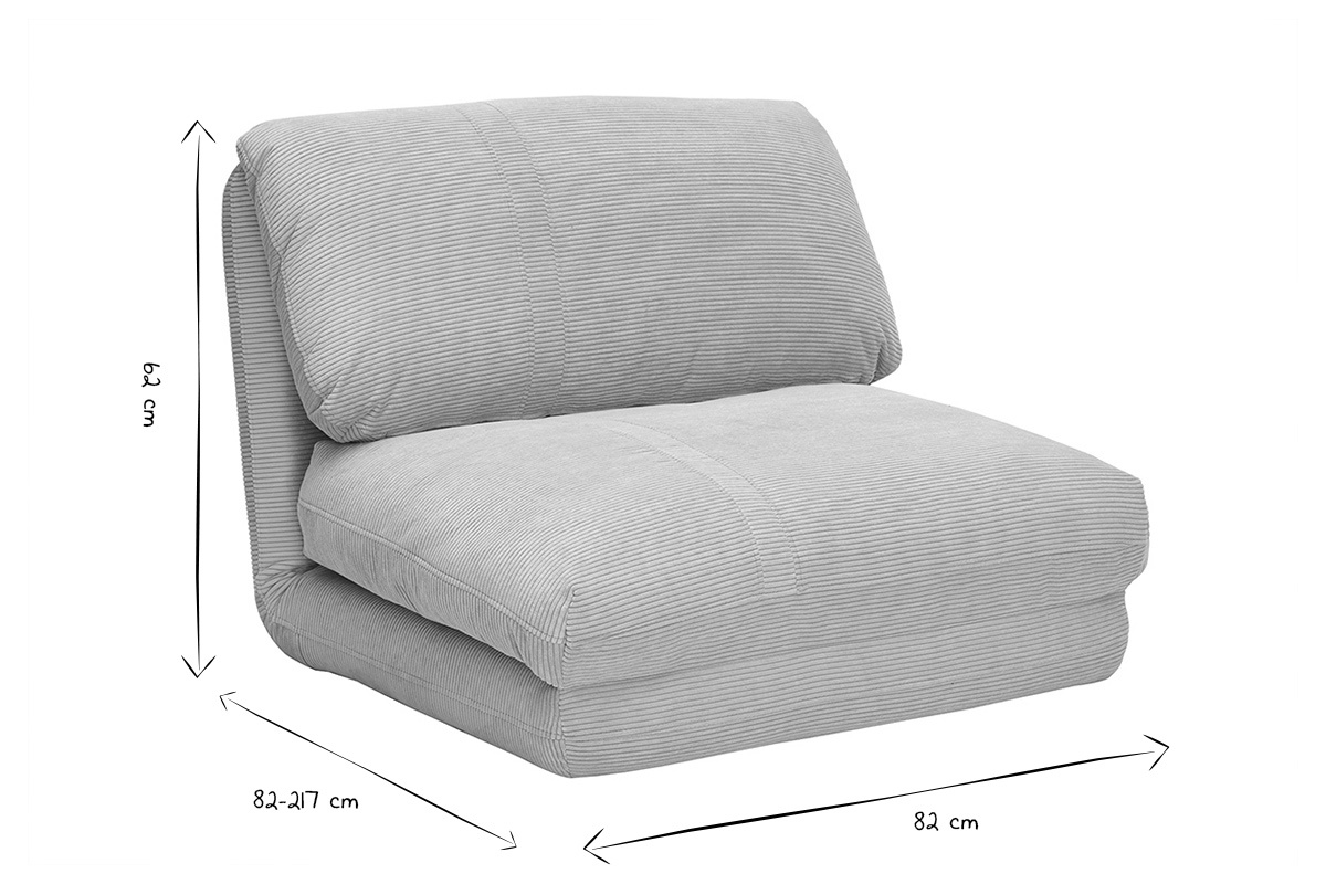Equipée d'un système d'inclinaison, SPENCER et ses cinq positions de dossier permettent de profiter d'un confort sur mesure ! Avec ses dimensions fermées L82 x P82 x H62 cm, ce fauteuil pliable est formé par trois grands volumes garnis d'une agréable mousse. Sieste improvisée ou invité resté pour la nuit ? Ce modèle se déplie facilement et rapidement afin de proposer un confortable couchage d'appoint pour 1 personne aux dimensions L82 x P176-217 x H12-18.5 cm.