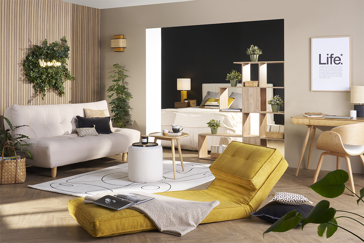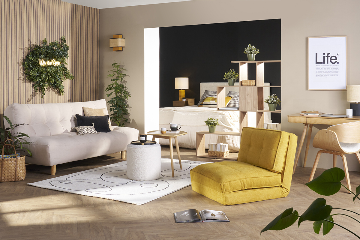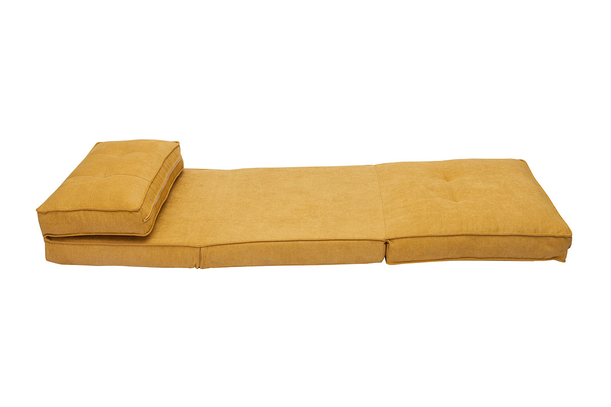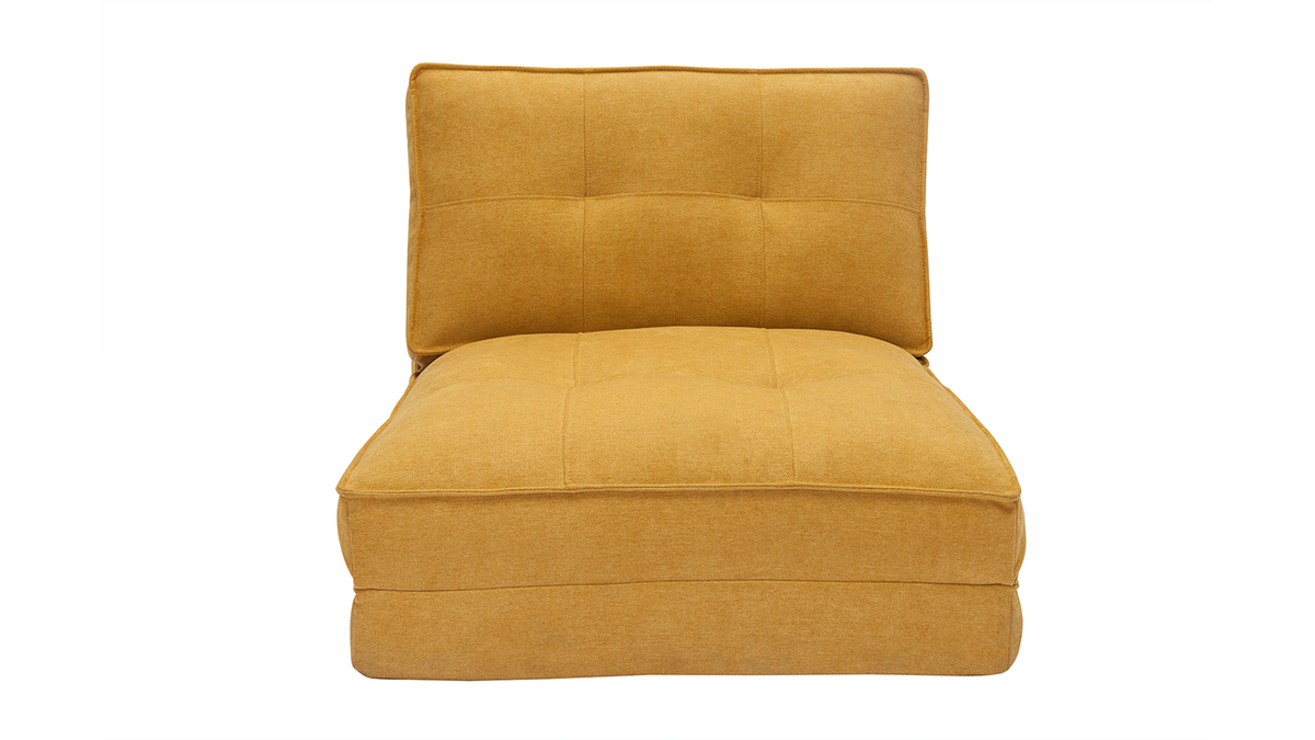Ultra pratique, cette chauffeuse convertible 1 place ne délaisse pas pour autant son sens du style. Elle revêt un doux tissu effet velours texturé jaune moutarde et une belle finition capitonnée. Avec son look discret, SALLY est un fauteuil modulable qui se fondra autant dans un intérieur scandinave que contemporain. Pour l'accessoiriser, misez sur un joli coussin brodé et un plaid au toucher douillet !