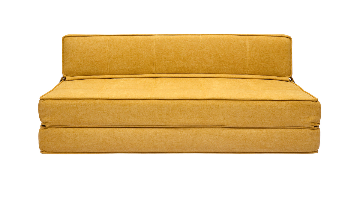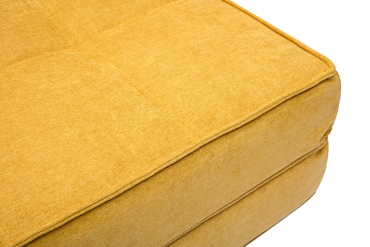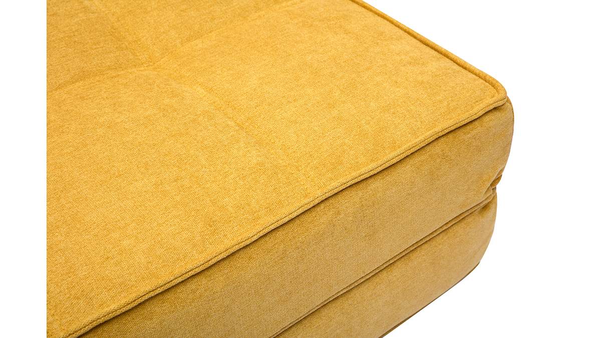Silhouette épurée et volumes classiques caractérisent cette jolie chauffeuse 2 places jaune moutarde. Dépourvue de piètement, cette assise aussi design que confortable se distingue par ses lignes au ras du sol et son allure minimaliste.