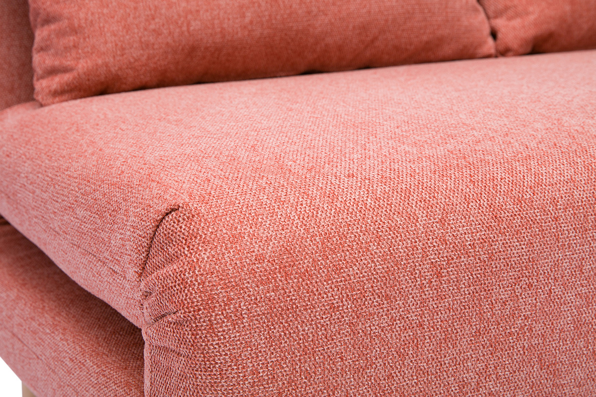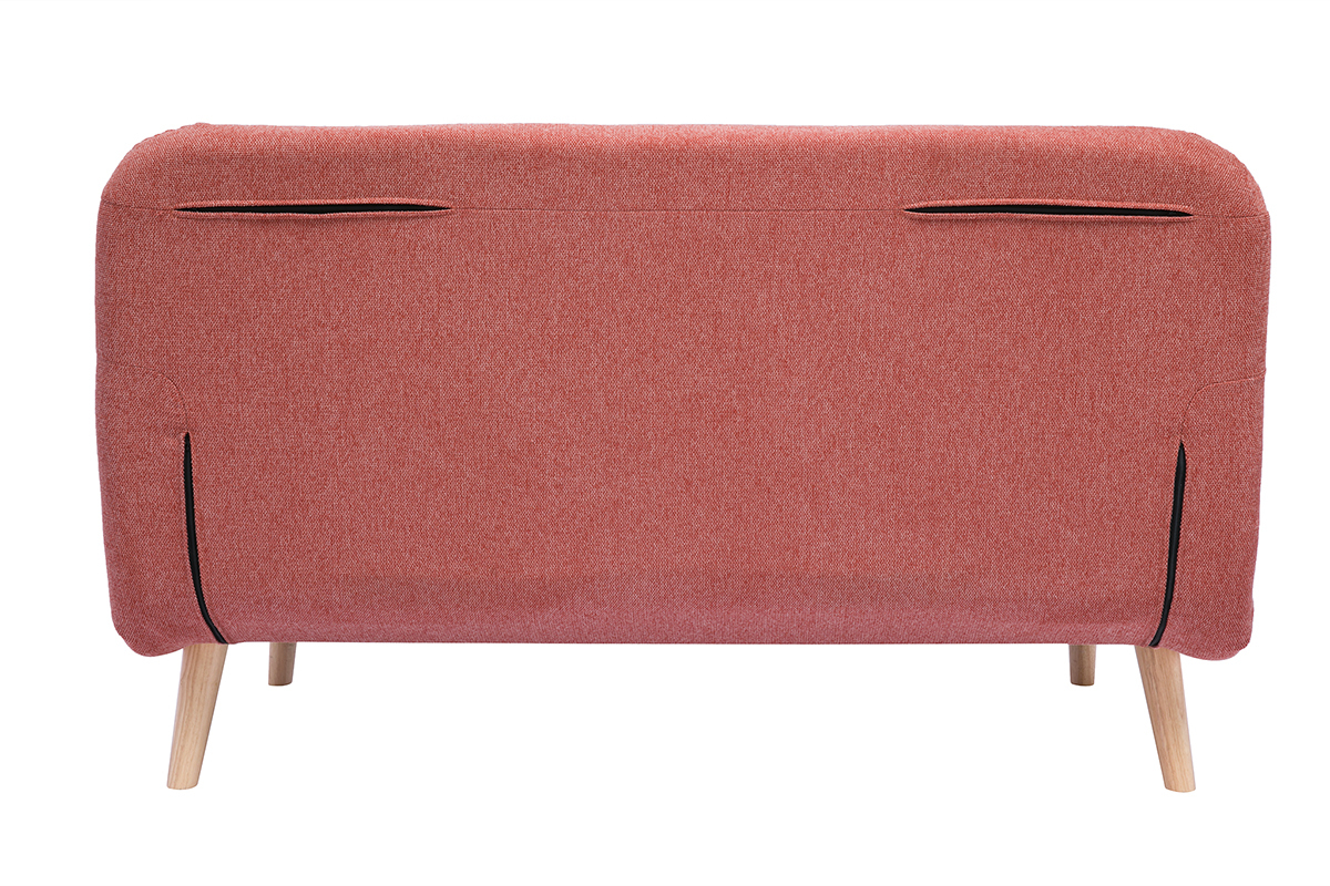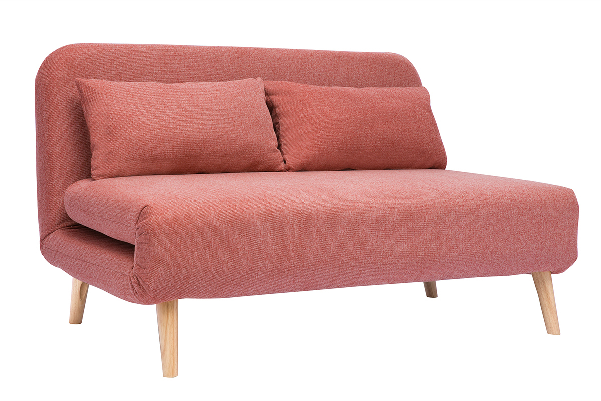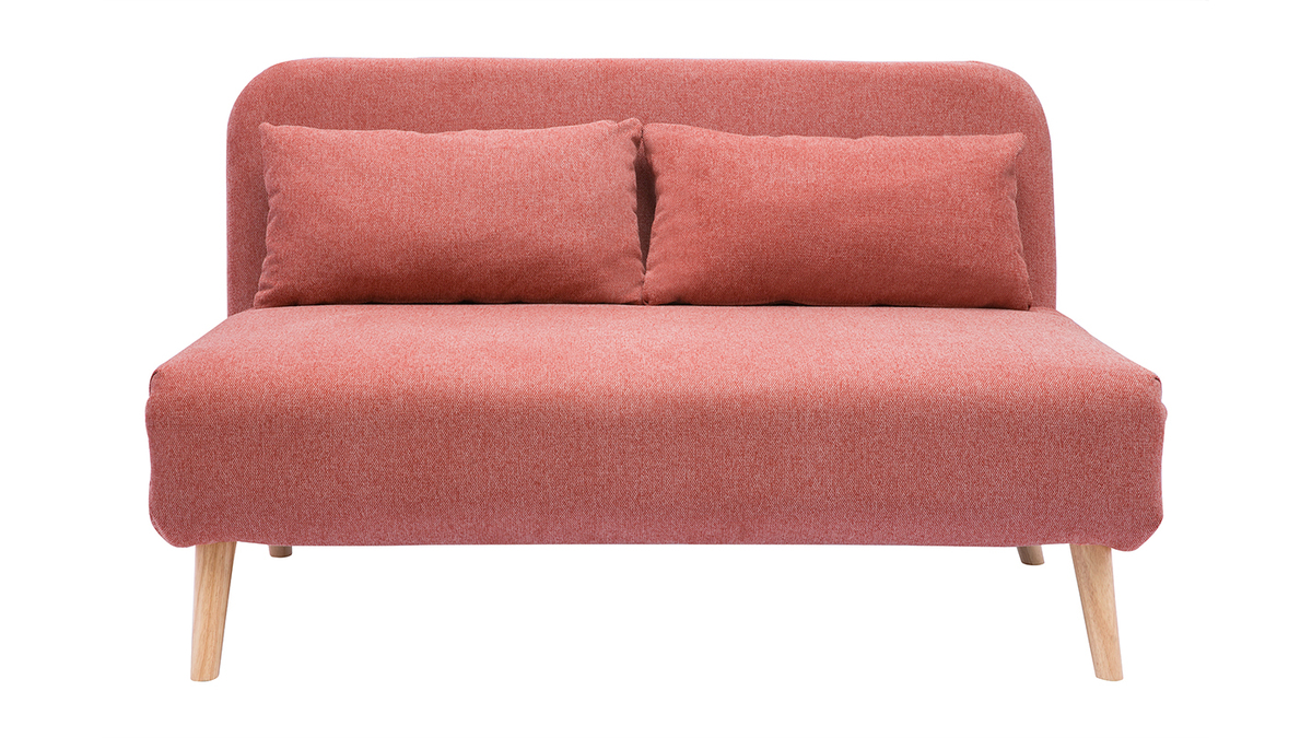 Cette banquette-lit en tissu effet velours texturé terracotta s'adapte à tout type d'intérieur. Avec son design simple et épuré, elle convient parfaitement à des pièces à la décoration moderne ou encore scandinave. Ses pieds compas en hévéa apportent un charme unique à ce petit canapé terracotta.