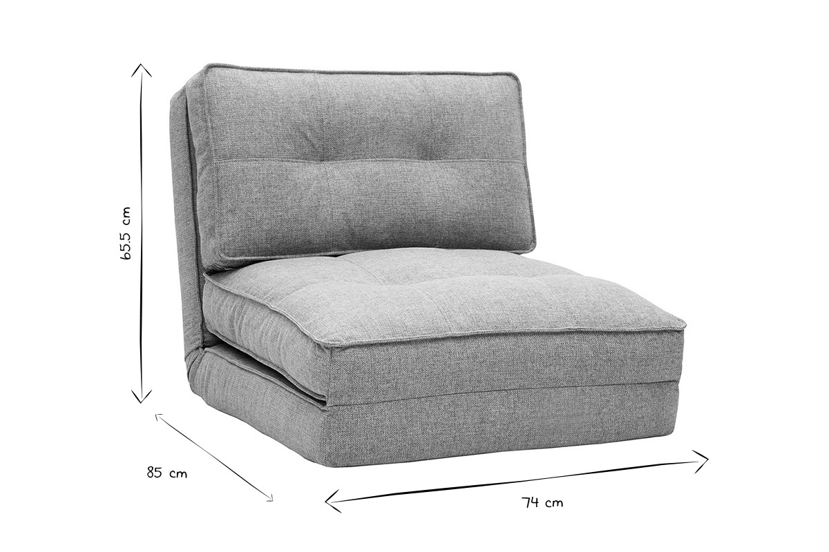 Ultra pratique, cette chauffeuse convertible 1 place ne délaisse pas pour autant son sens du style. Elle revêt un doux tissu taupe et une belle finition capitonnée. Avec son look discret, SALLY est un fauteuil modulable qui se fondra autant dans un intérieur scandinave que contemporain. Pour l'accessoiriser, misez sur un joli coussin brodé et un plaid au toucher douillet !