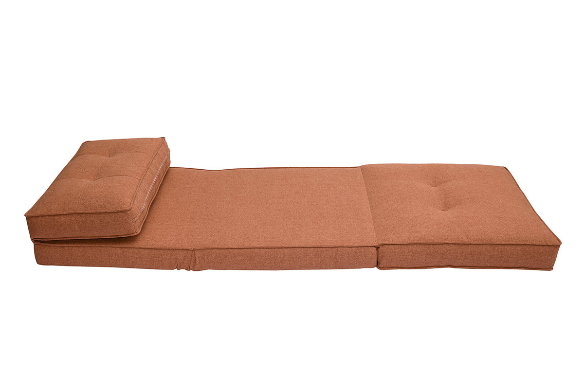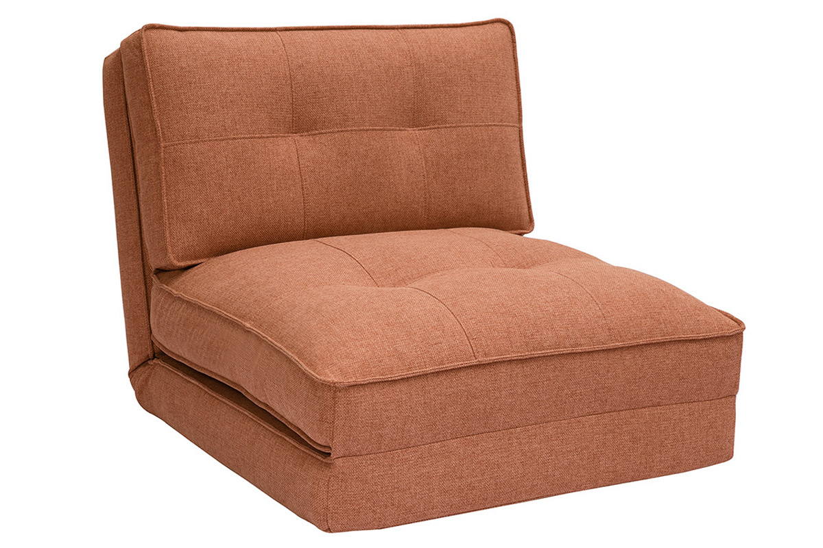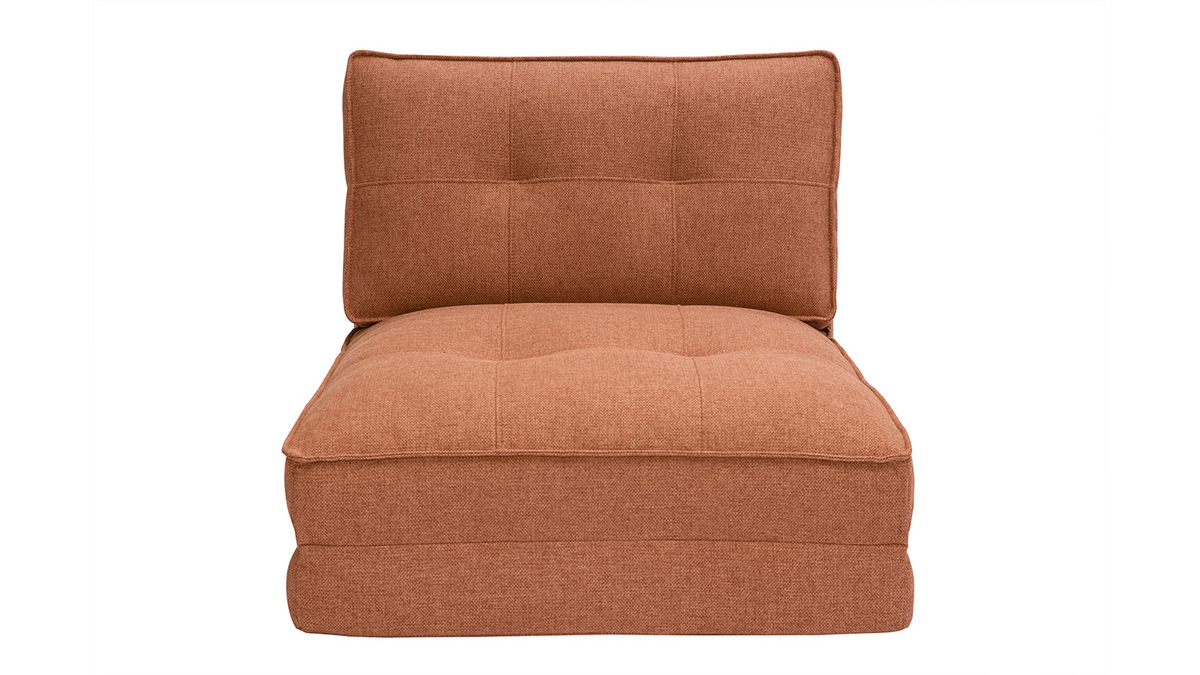 Ultra pratique, cette chauffeuse convertible 1 place ne délaisse pas pour autant son sens du style. Elle revêt un doux tissu terracotta et une belle finition capitonnée. Avec son look discret, SALLY est un fauteuil modulable qui se fondra autant dans un intérieur scandinave que contemporain. Pour l'accessoiriser, misez sur un joli coussin brodé et un plaid au toucher douillet !