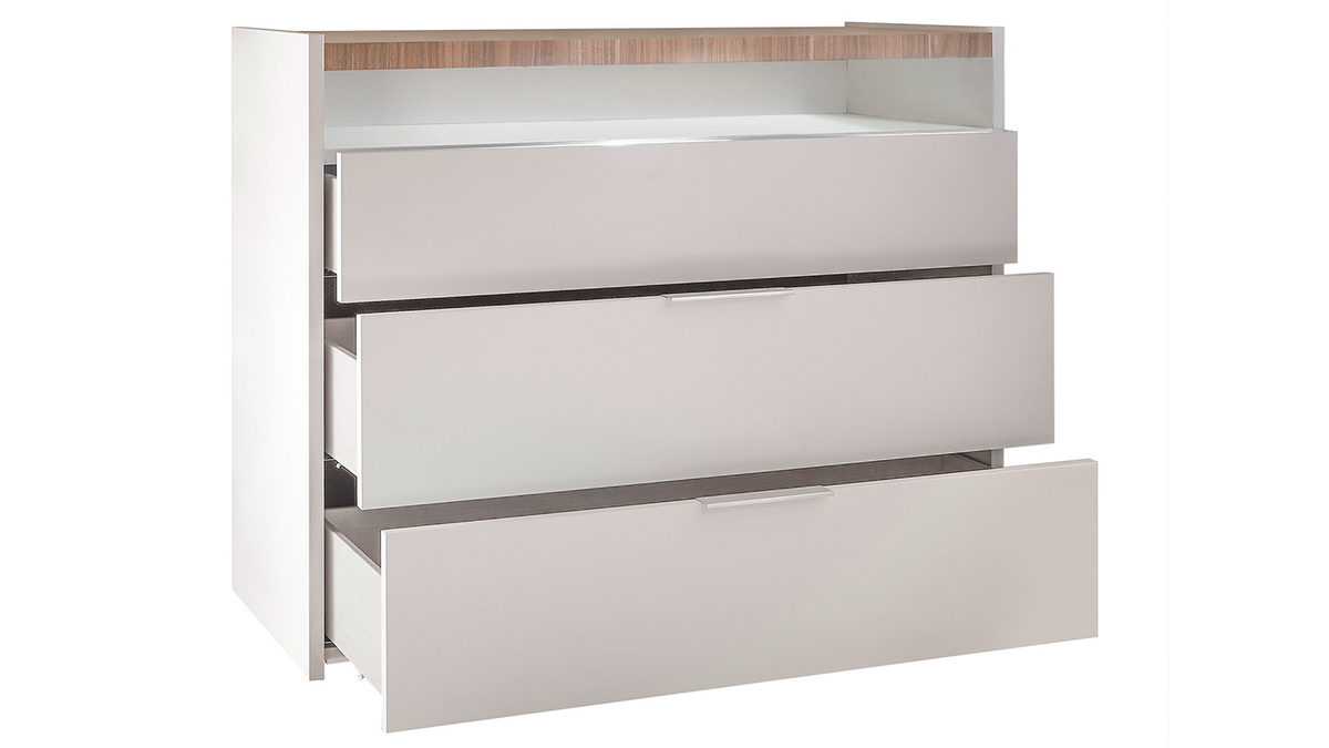 Cette commode fabriquée en Italie est équipée de 3 grands tiroirs qui vous permettront de ranger votre linge de maison ainsi que vos vêtements. De fines poignées métalliques ton sur ton facilitent l'ouverture et la fermeture de chaque espace de rangement.