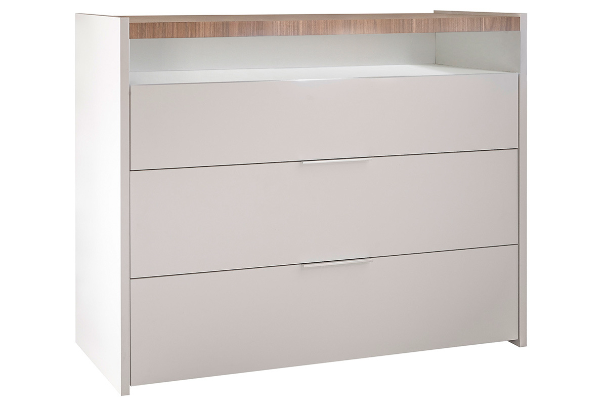 Avec sa finition chêne, le plateau semble s'élever au-dessus de la commode. Il sera parfait pour personnaliser votre chambre en y déposant des cadres, des souvenirs de voyage et une lampe à poser design, par exemple.