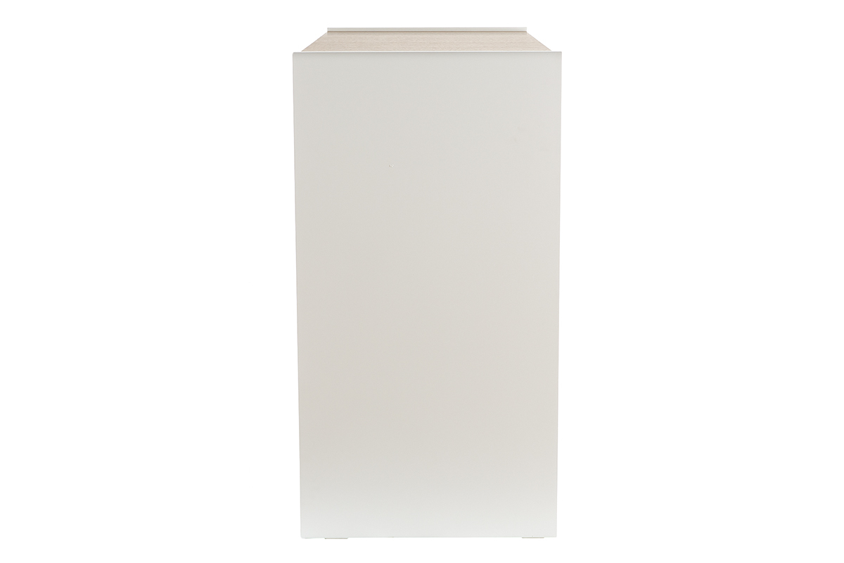 Cette commode à l'esthétique minimaliste est un véritable atout pour les petits espaces. Avec ses dimensions compactes (L110 x P50 cm) et sa finition blanc mat, elle s'intègre facilement dans les chambres les plus exiguës. On l'imagine aussi très bien une entrée.