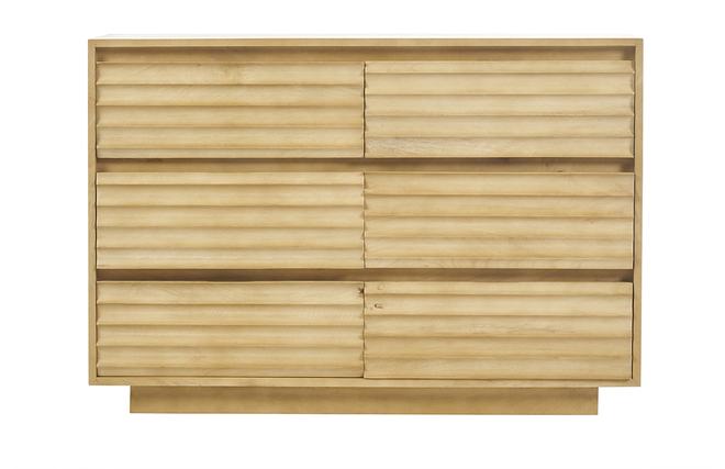 D'une construction robuste en manguier massif, cette commode reflète la durabilité et la qualité. Le bois de manguier, réputé pour sa solidité et sa belle couleur chaleureuse, confère à ce meuble un charme naturel et authentique. Son aspect lisse et soigné met en valeur les nuances et veinures uniques du bois, rendant chaque commode unique en son genre. Le design avec ses lignes sculptées en relief, donne du caractère à cette pièce et ajoute un aspect visuel apaisant et structuré, typique du style japandi.