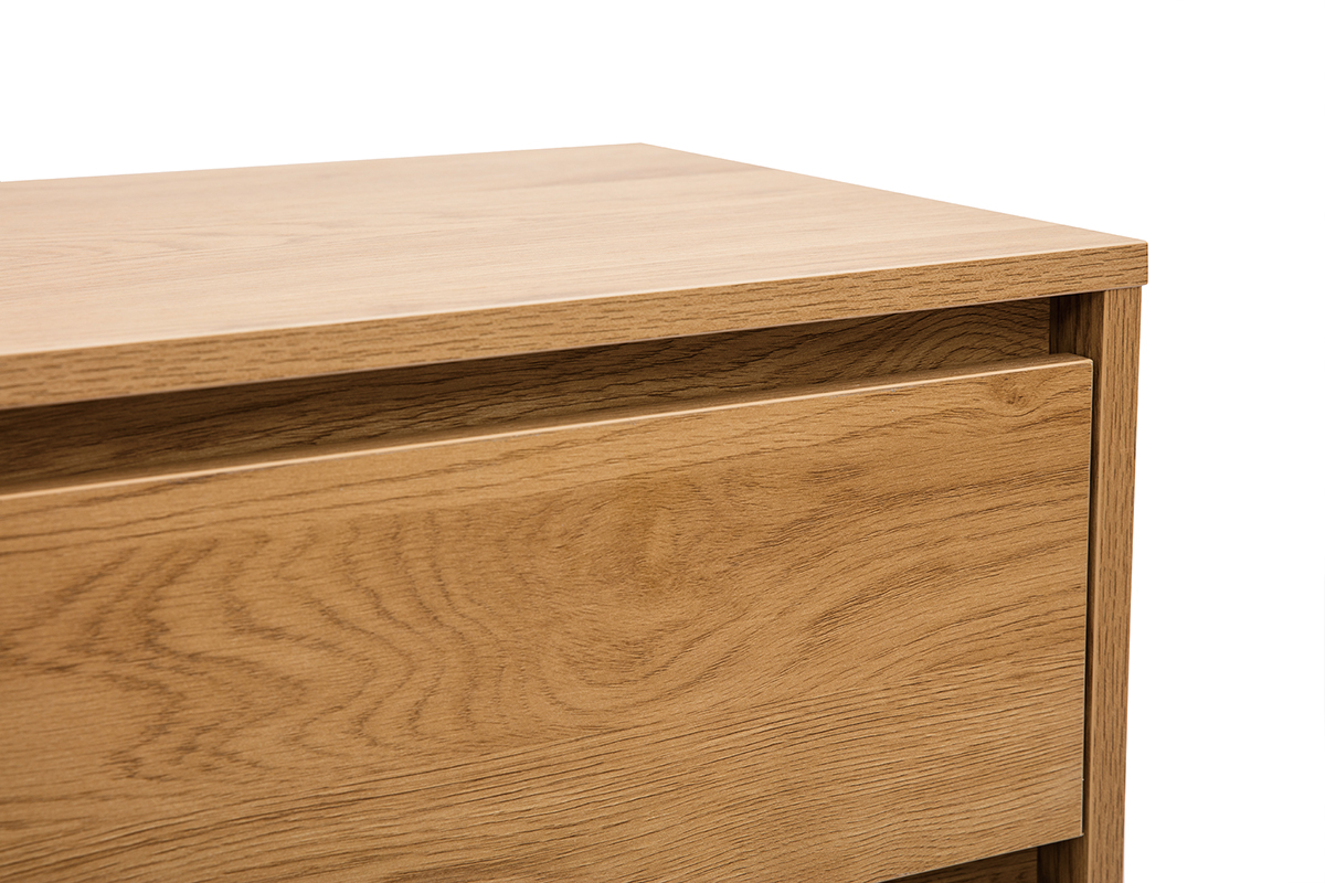 Côté look, vous serez totalement séduit par ses lignes sobres, son caisson finition bois clair chêne (panneaux de fibres de bois mélaminé) et ses pieds en métal noir. Chaleureuse tout en étant moderne, cette commode bois et métal offre le compromis parfait entre style industriel et contemporain. Elle saura se fondre très facilement avec le reste du mobilier !