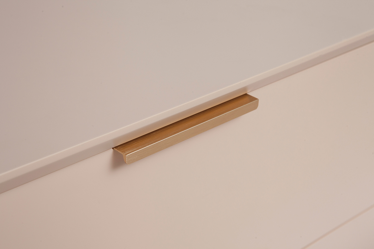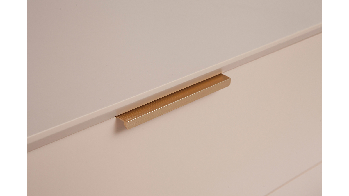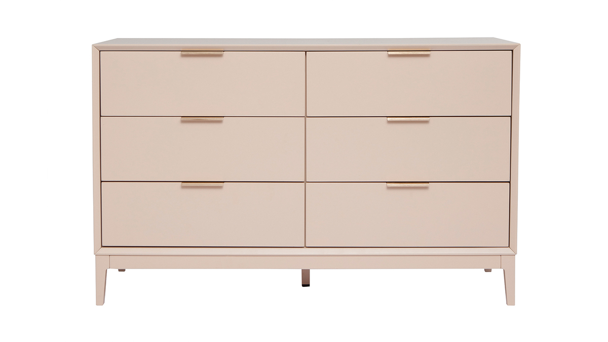 Il a suffi ici d'associer deux matériaux pour que ce meuble de rangement original acquière sa forte personnalité. Avec ses beaux volumes, ses lignes épurées et son doux monochrome cette commode rose clair et poignées métal doré se tient prête à réveiller les codes classiques et enchanter l'espace nuit !