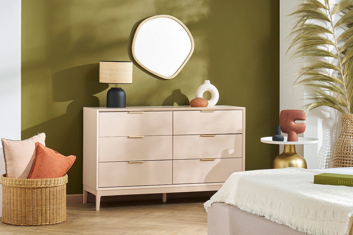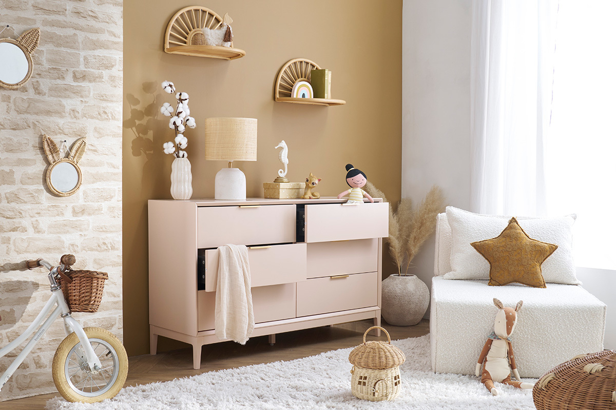 Saupoudrée par petite touche ou en all-over, la palette des pastels fait partie des tendances déco qui ont toutes leur place dans nos décors. Parfait pour instaurer une ambiance apaisante et rafraîchissante dans la chambre à coucher, la couleur rose en décoration d'intérieur a l'avantage de se marier tant au bois, qu'au blanc laqué, qu'au marbre ou au verre. Ambiances boudoir, scandinave ou moderne, osez la commode rose pastel dans la chambre à coucher : une valeur sûre qui s'associe à tous les styles !