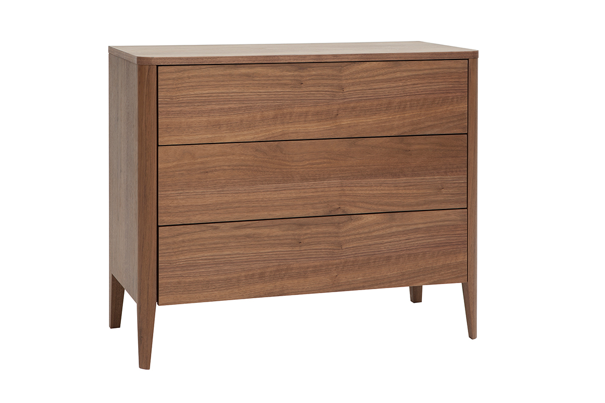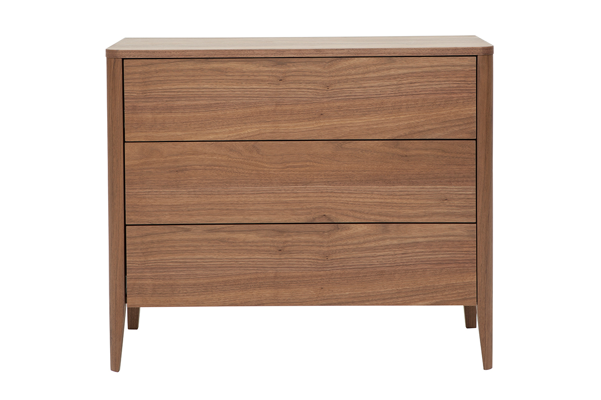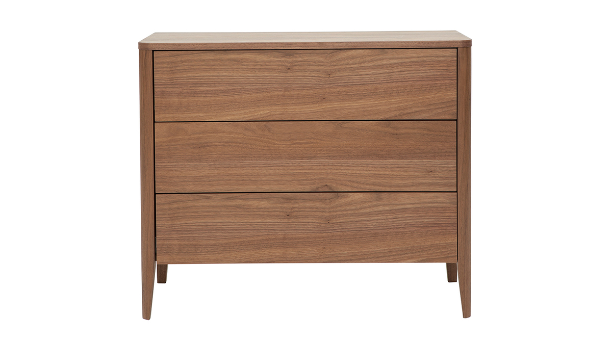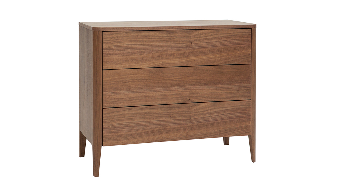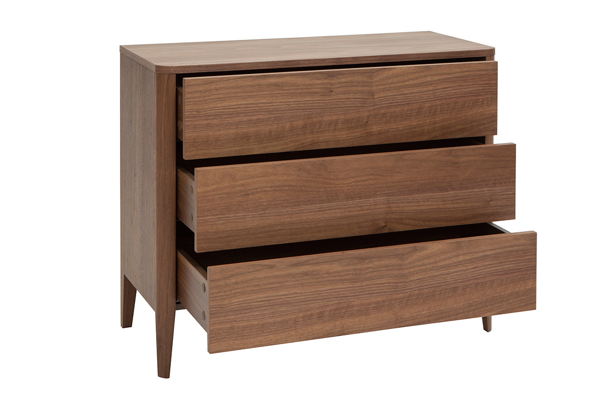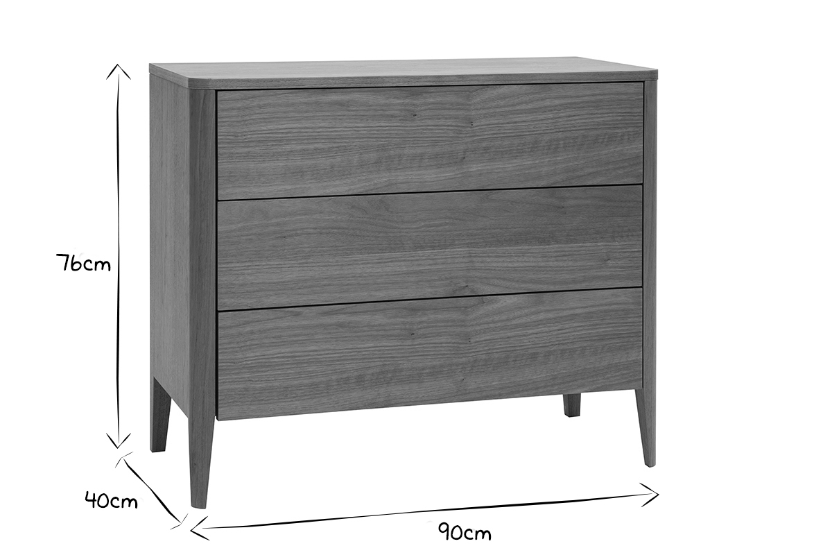 Commode en bois foncé noyer 3 tiroirs L90 cm BENJA livrée prête à assembler.
