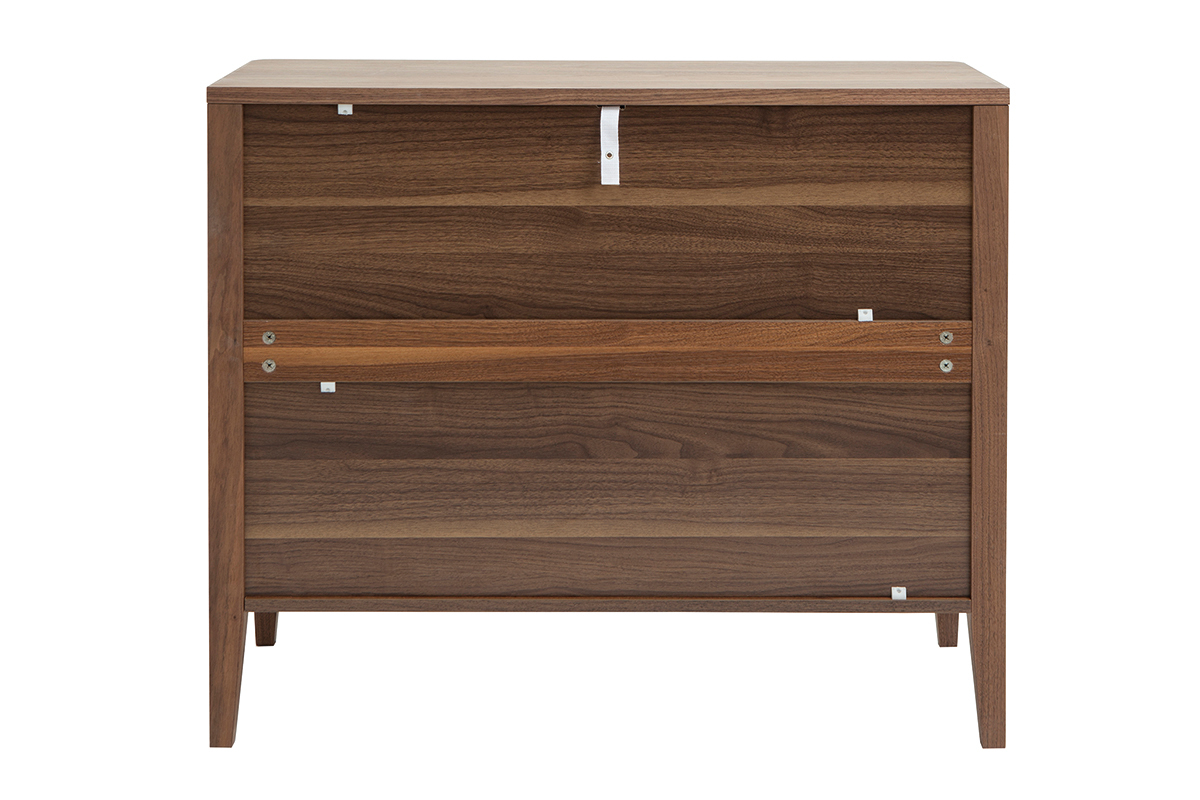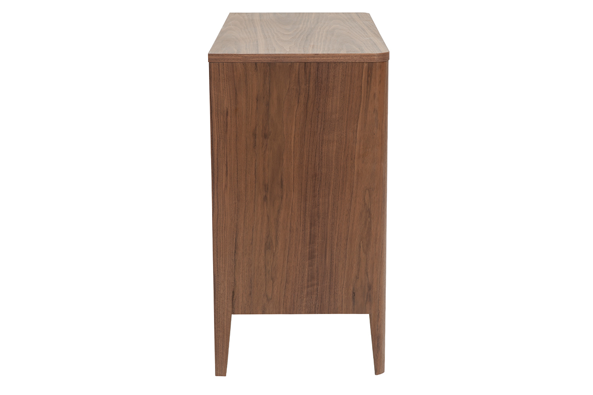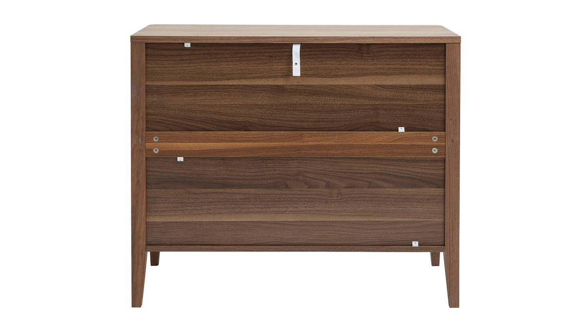 Résolument robuste, structure et piètement en panneaux de fibres de bois finition placage noyer forment un solide meuble de rangement prêt à vous accompagner longtemps dans votre quotidien !
