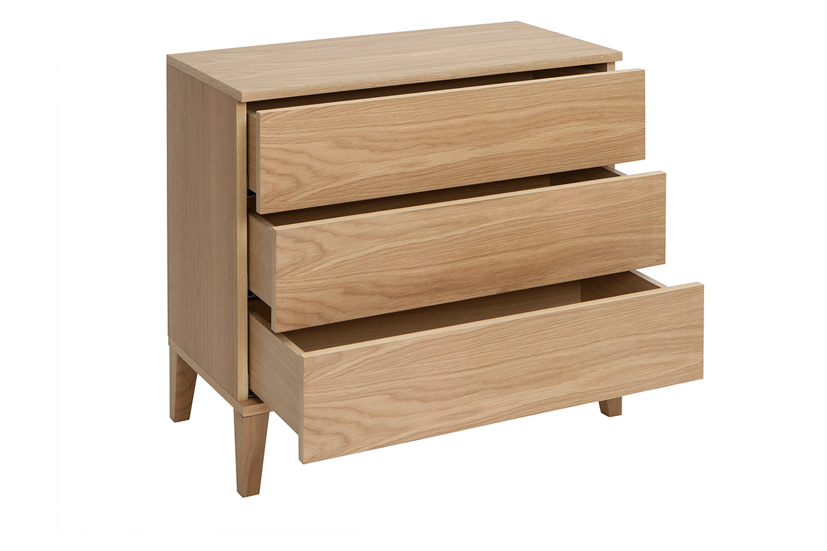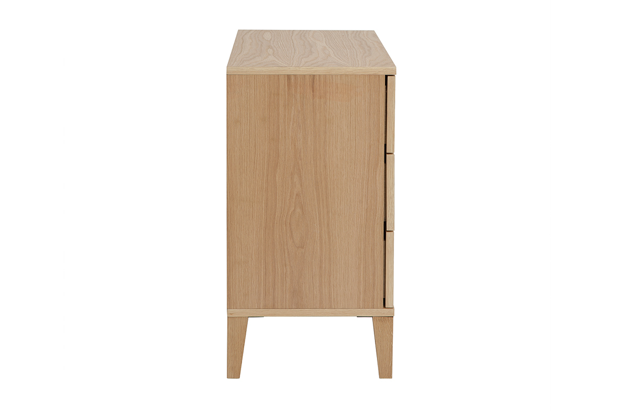 Côté design, cette commode scandinave reste fidèle au style nordique. Ses lignes se veulent simples, loin de tout superflu. Seuls des pieds fuselés viennent réhausser l'ensemble avec justesse.
