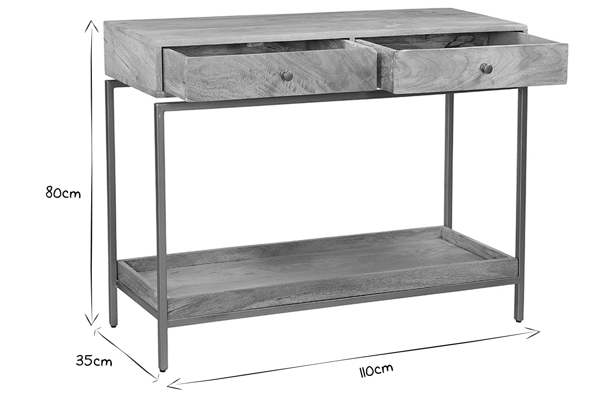 À elle seule, OCTAVIE donnera beaucoup d'allure à votre entrée. En plus d'insuffler une ambiance chaleureuse tout en élégance, elle s'avèrera ultra pratique au quotidien grâce à ses deux tiroirs (L48 x P30 x H80 cm). Cette console aux dimensions compactes (L110 x P35 x H80 cm) pourra également occuper une place de choix dans le séjour comme dans la chambre.