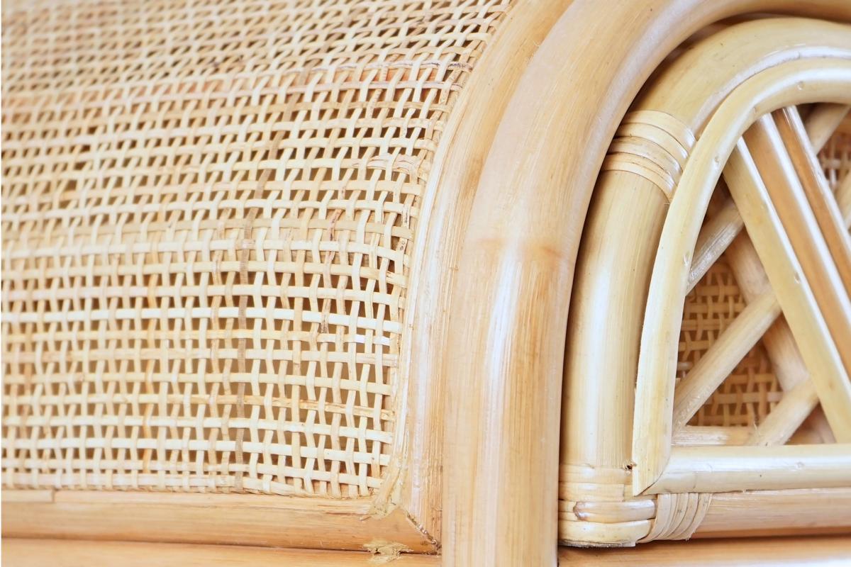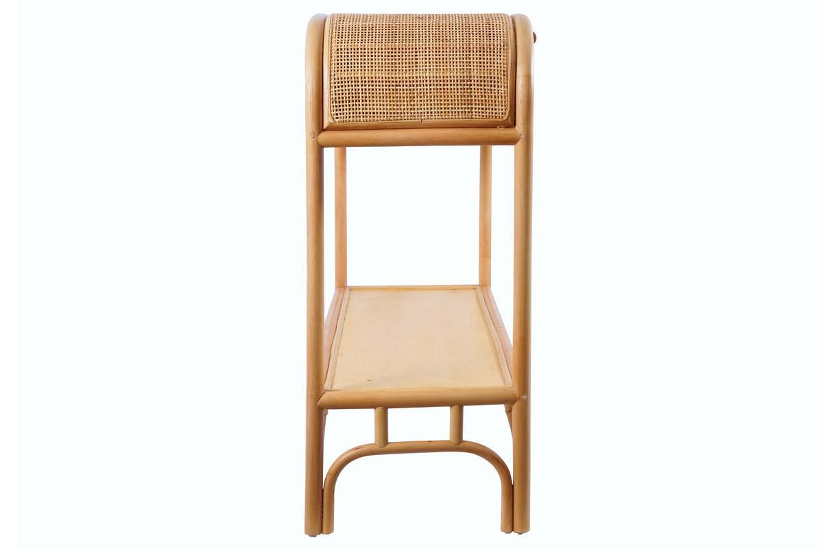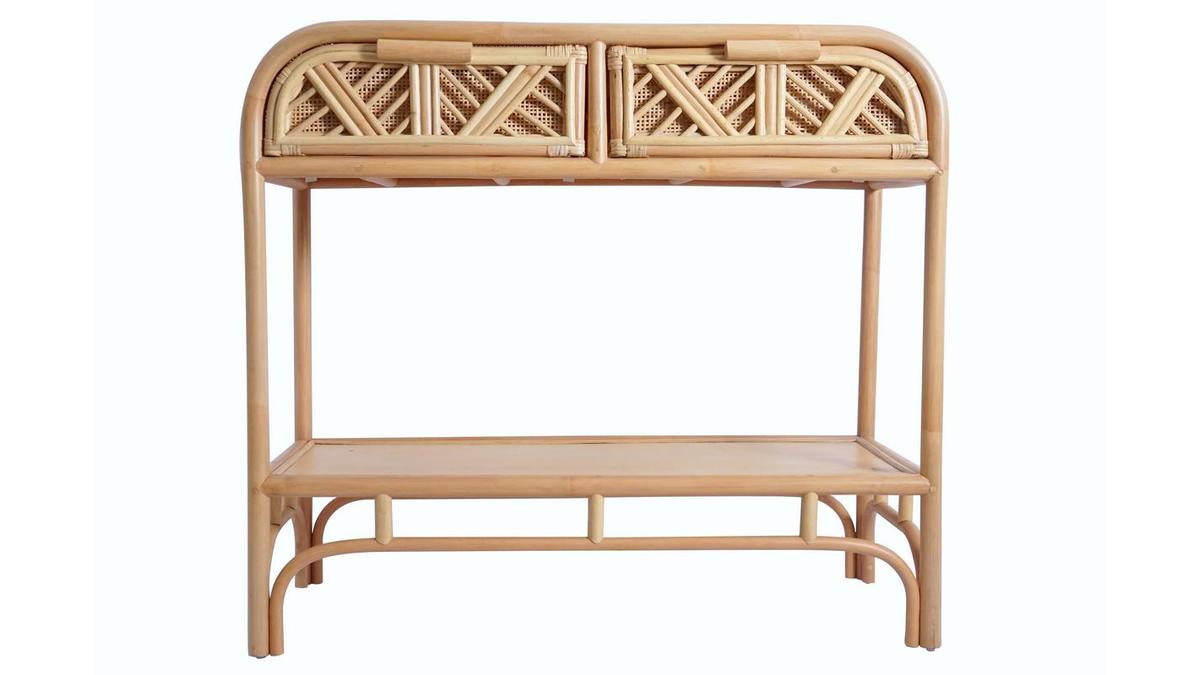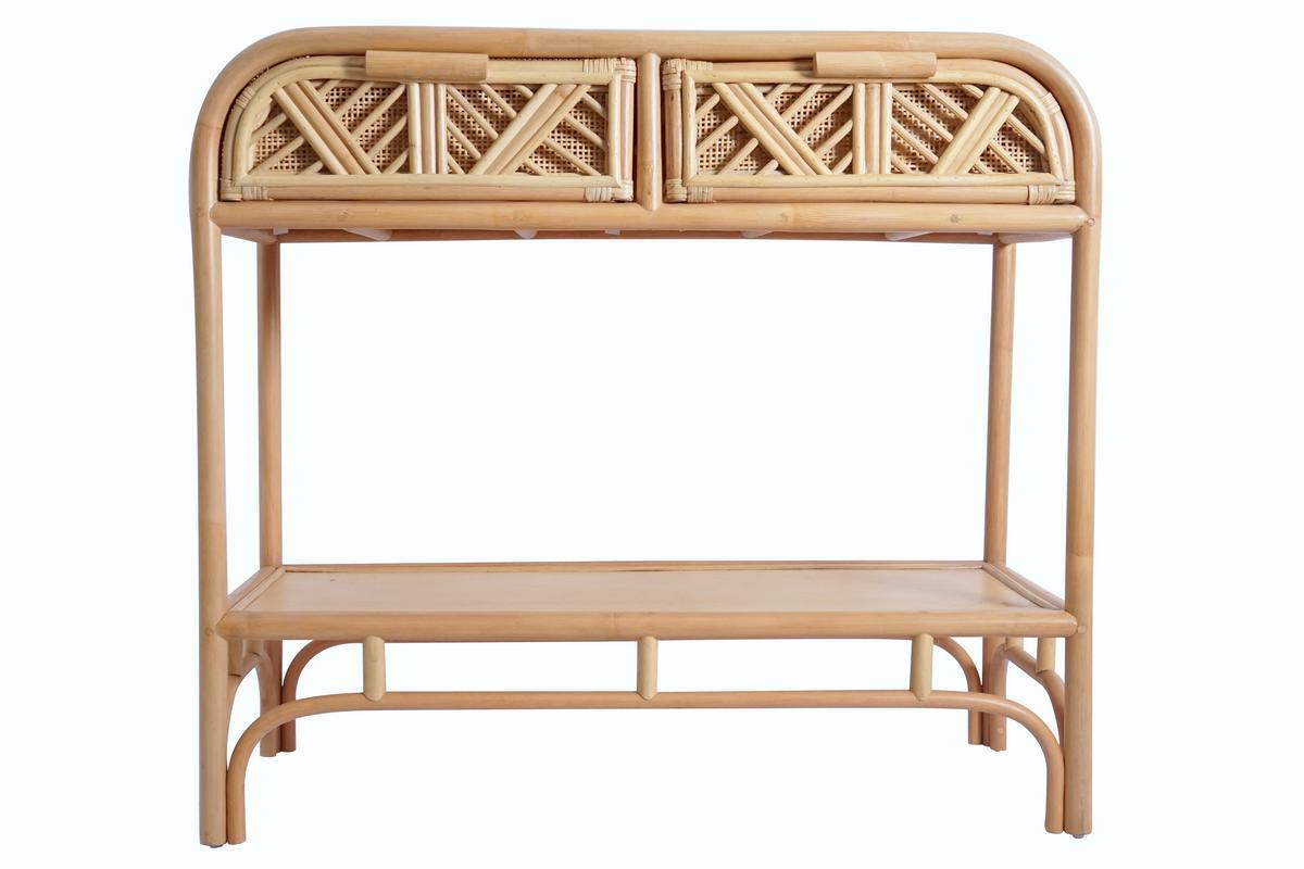 Cette console en rotin est issue d'un joli travail sur la matière ! Elle est fabriquée en rotin selon un savoir-faire artisanal ancestral. Chaque pièce est unique. De la trame en rotin courbé au cannage, tout a été soigneusement étudié afin d'obtenir un rendu plein de charme. On aime particulièrement le contraste entre le design tout en courbes de cette console vintage et le motif géométrique qui se dessine sur les tiroirs.