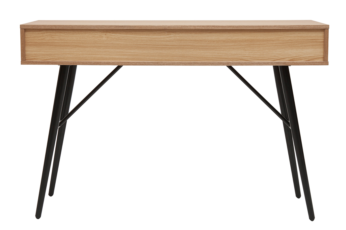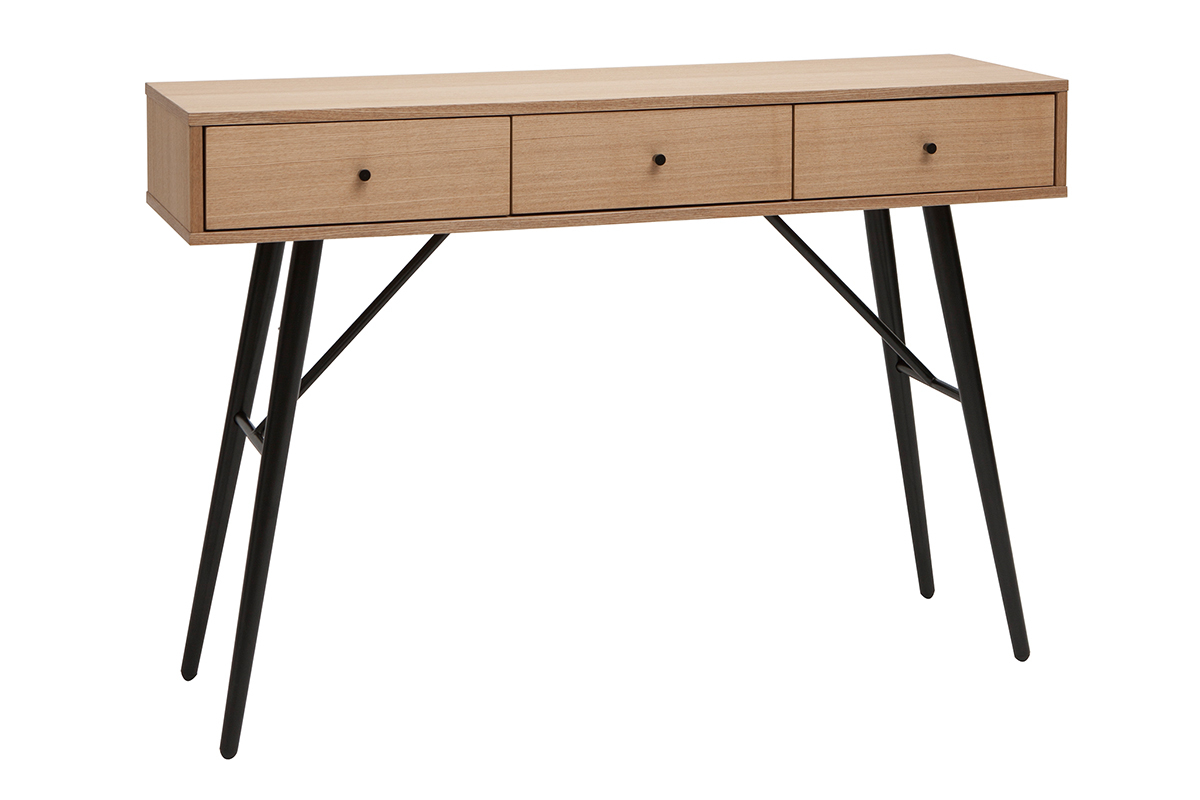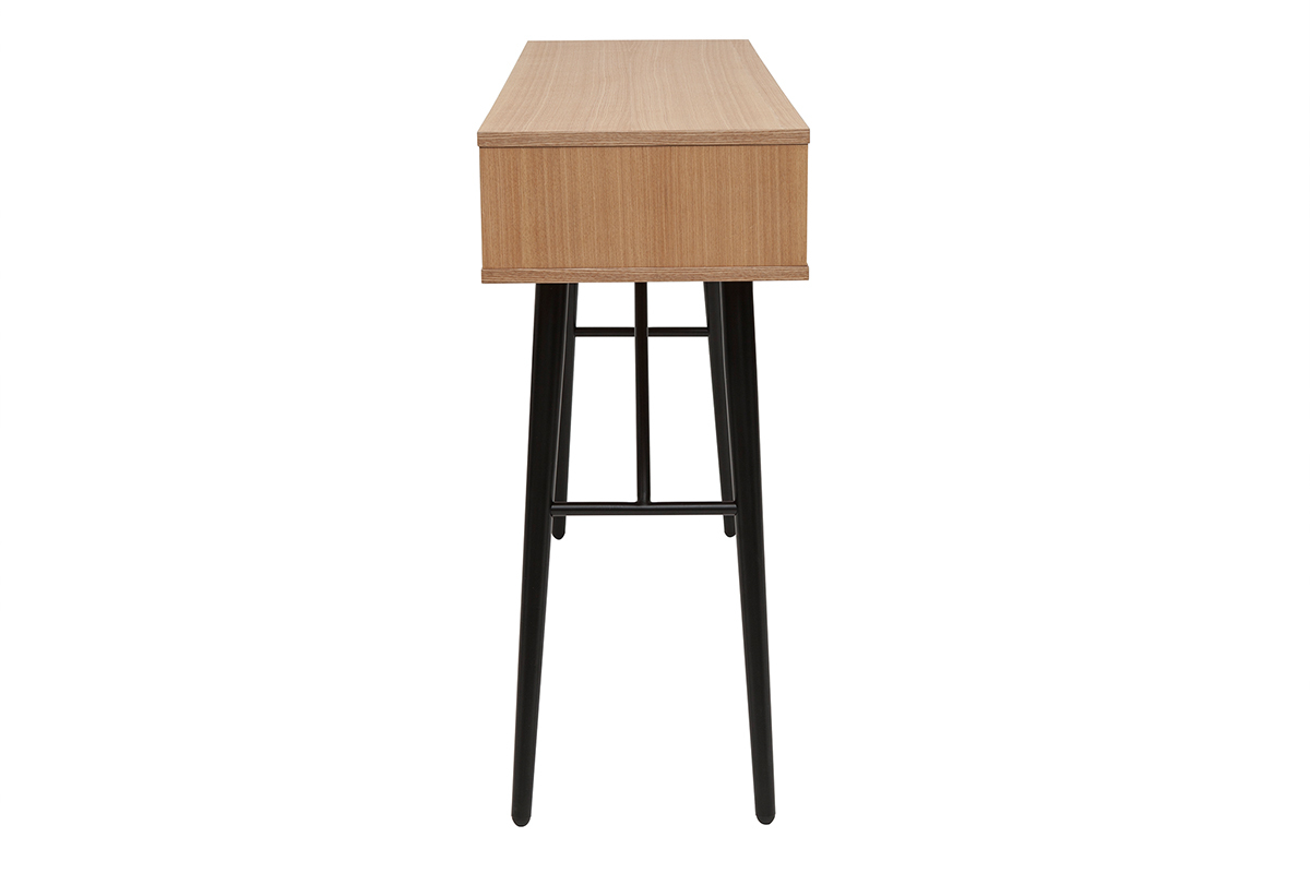 Inspirée des consoles vintage et modernisée par des lignes contemporaines, cette console en bois clair et métal noir sublimera votre hall et donnera le ton de votre déco intérieure. Son caisson en bois (panneaux de fibres de bois placage frêne) et son piètement en métal noir forme un harmonieux duo. Une combinaison gagnante de matières et couleurs pour un look 100 % contemporain !