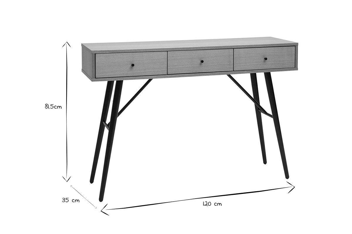 Avec ses dimensions (L120 x P35 x H81.5 cm), cette grande console de faible profondeur habillera l'espace sans l'encombrer. Des volumes parfait pour sublimer un couloir étroit ! Dans une pièce de vie, ce meuble de rangement avec tiroirs au solide piètement en métal pourra également faire office de bureau d'appoint.