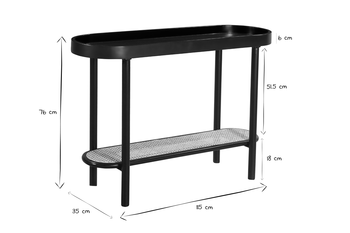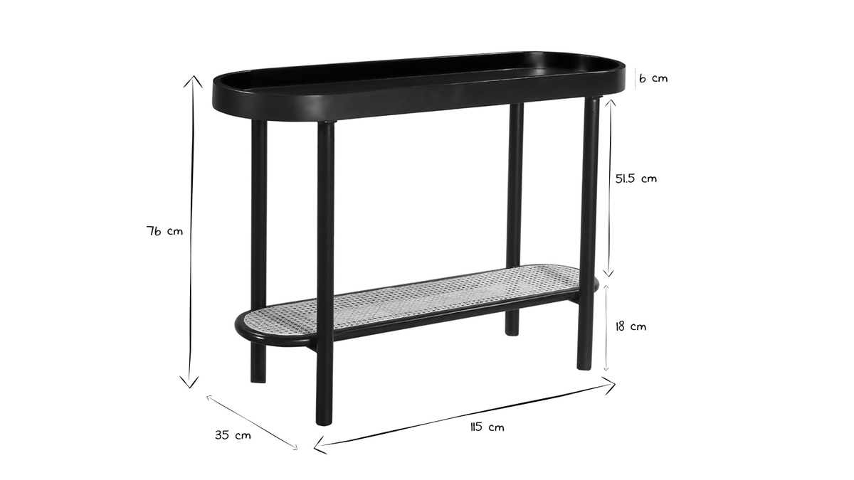 Aussi pratique qu'esthétique, avec son long plateau ovale aux bords montants (H6 cm) cette console à double plateaux est le meuble d'entrée parfait pour accueillir vos clés, du courrier, mais aussi de la petite déco ou une plante verte. Idéal pour meubler l'entrée avec style !