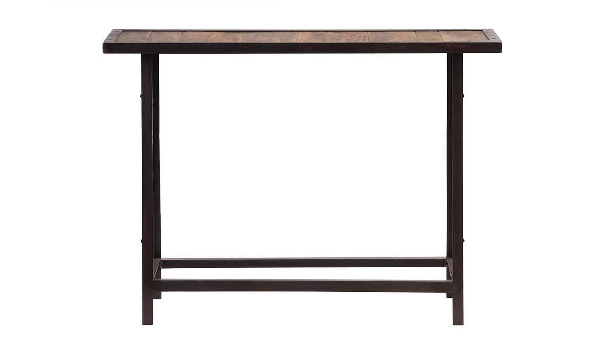 Structure : acier brut, plateaux bois de manguier (épaisseur 2,9 cm), finition vernis naturel incolore. Dimensions L110xP35H80 cm, poids du colis 25 kg.